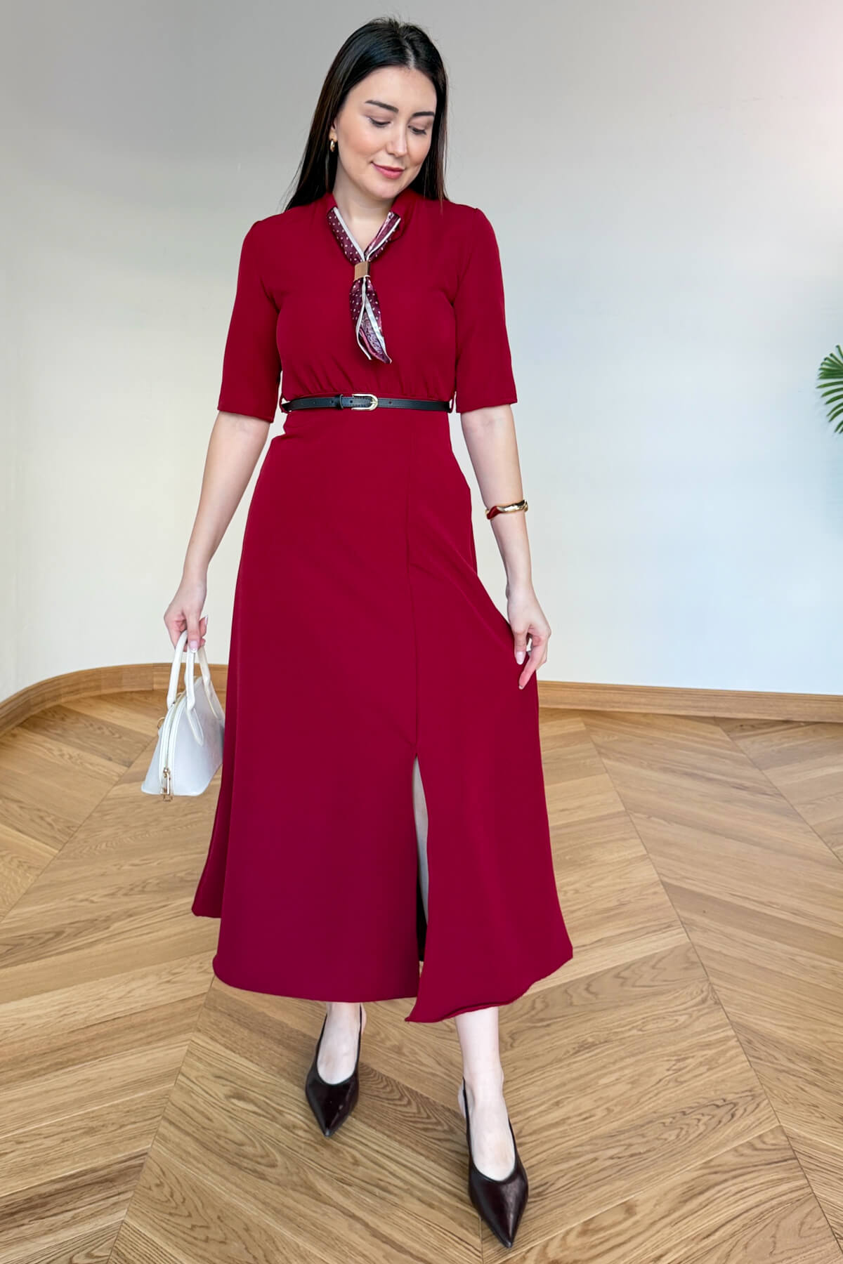 Kesim: Yırtmaçlı etek, kendinden kemerli bel.