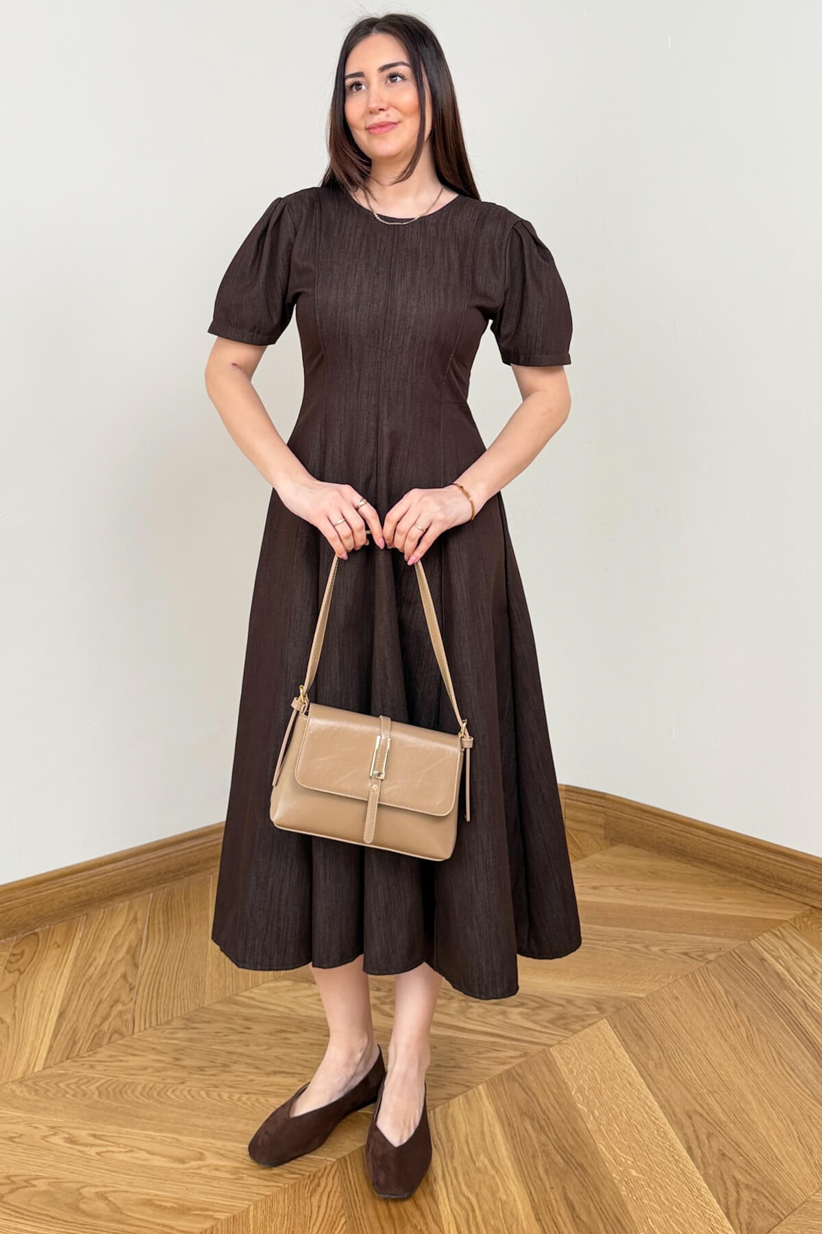 Kesim: Bel hattını hafifçe vurgulayan, aşağıya doğru genişleyen A-form kesim.