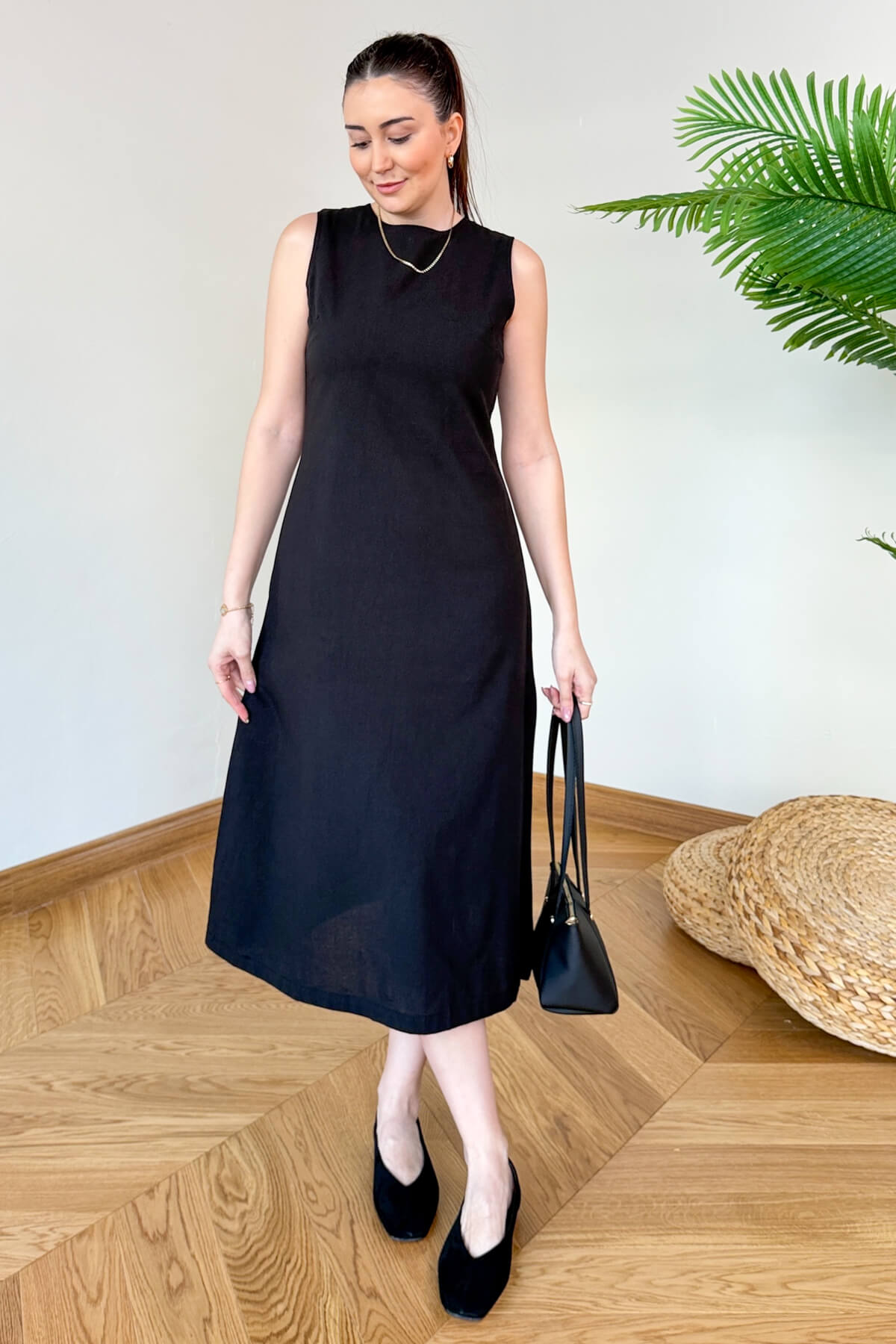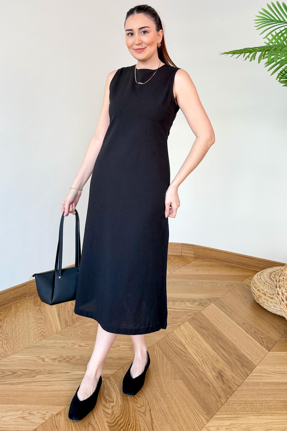 Doğallığın ve cesur detayların kusursuz birleşimi olan bu keten elbise, yaz gardırobunuzun en ikonik parçası olmaya aday. 126 cm uzunluğuyla zarif bir silüet çizen tasarım, ön kısmındaki yalın duruşunu sırtındaki iddialı dekolte detayıyla dengeliyor. Keten kumaşın nefes alan, tok yapısı sayesinde gün boyu süren bir konfor ve sofistike bir şıklık vadediyor.