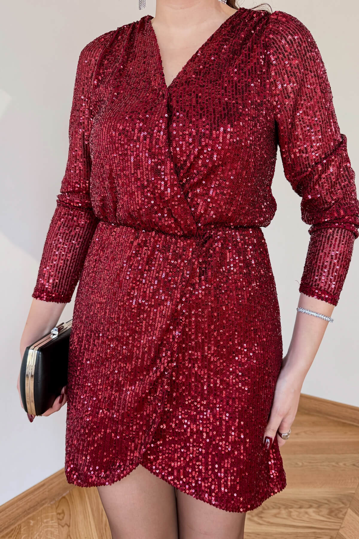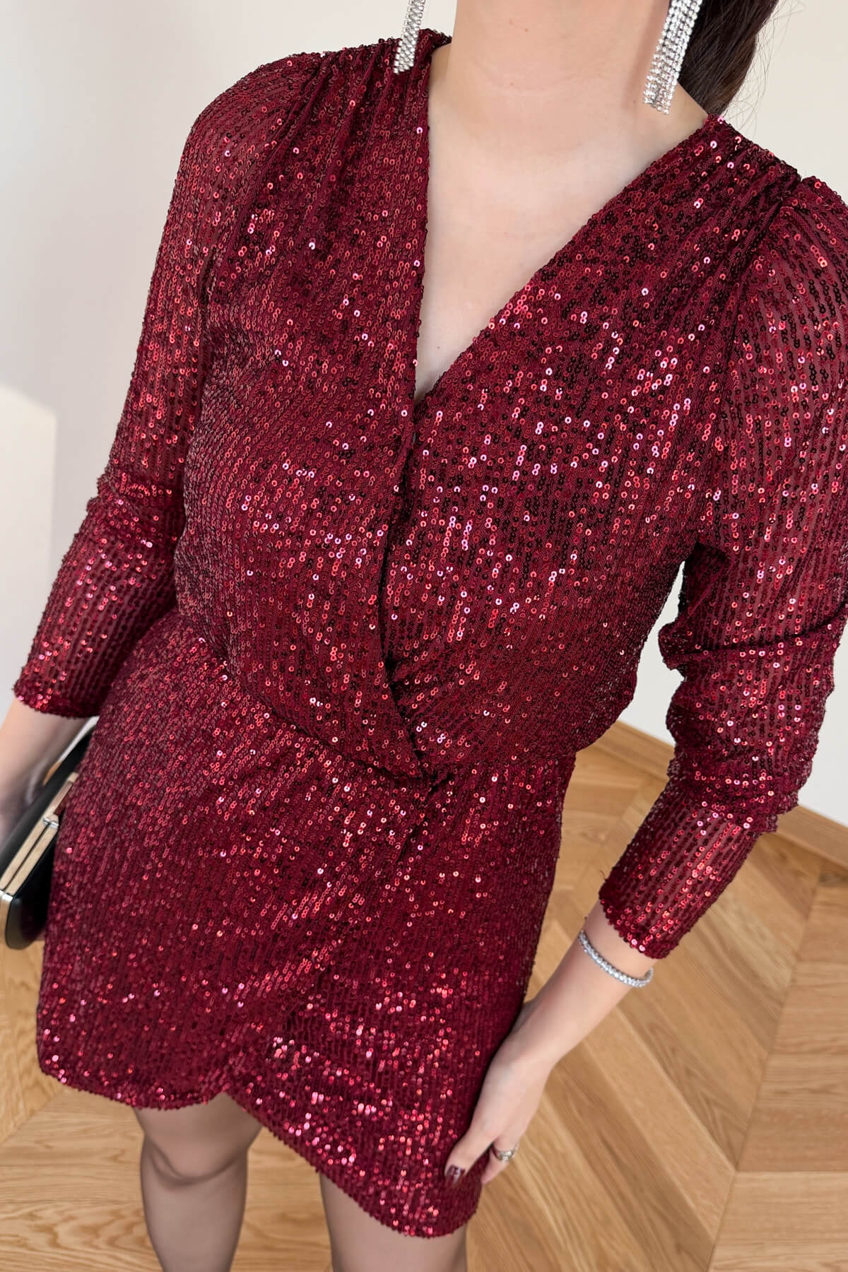 Kumaş Türü: Işıltılı, yoğun sim ve payet işlemeli kumaş
