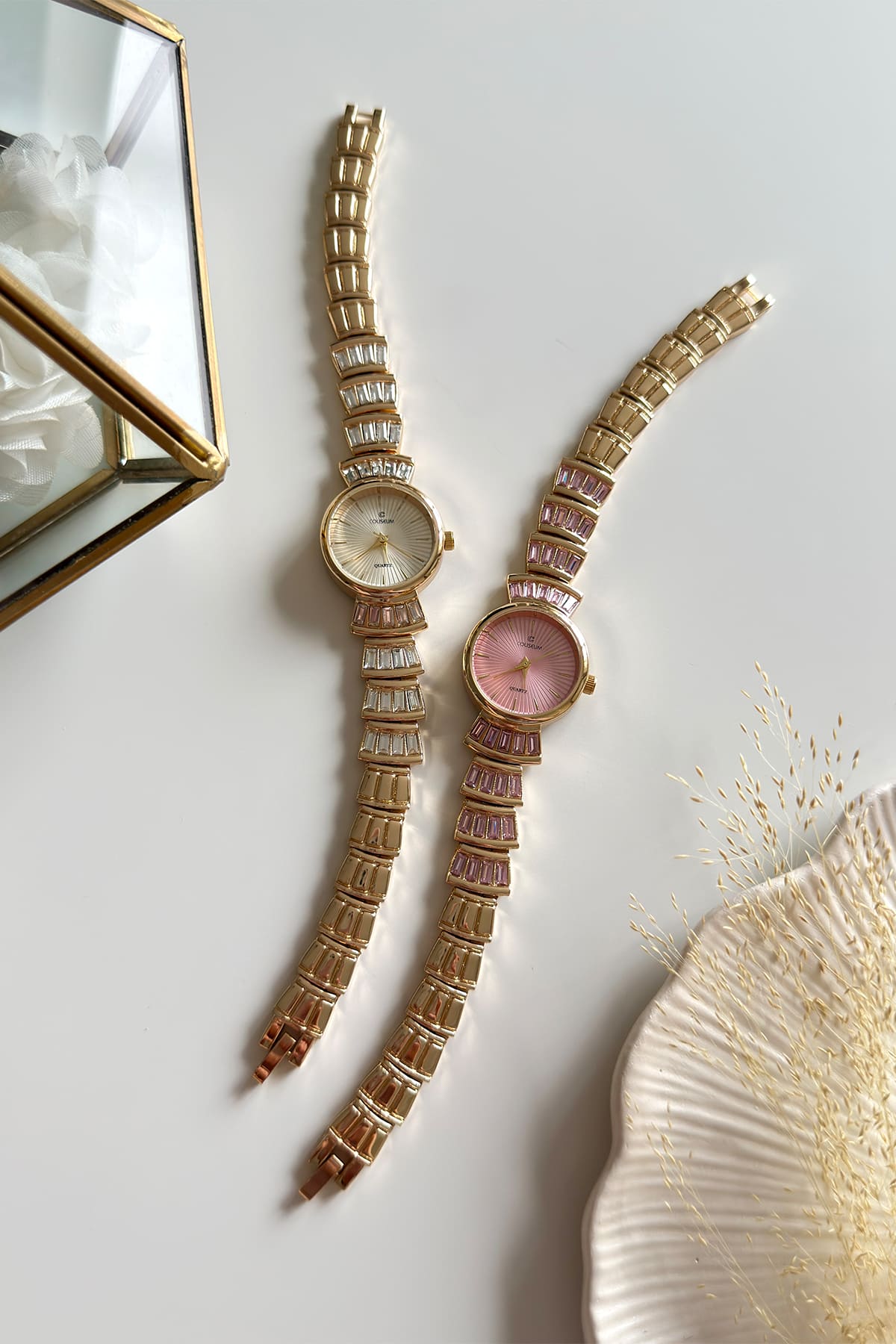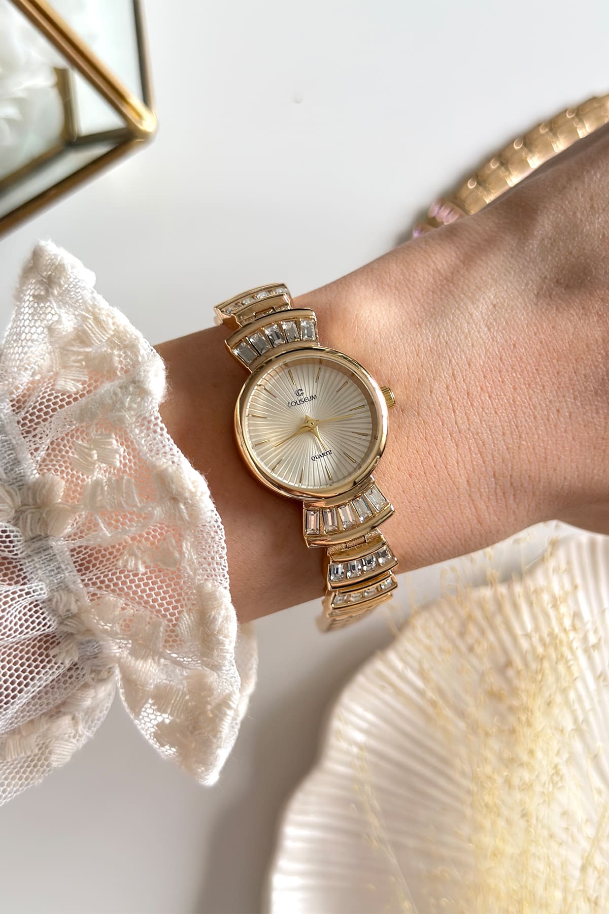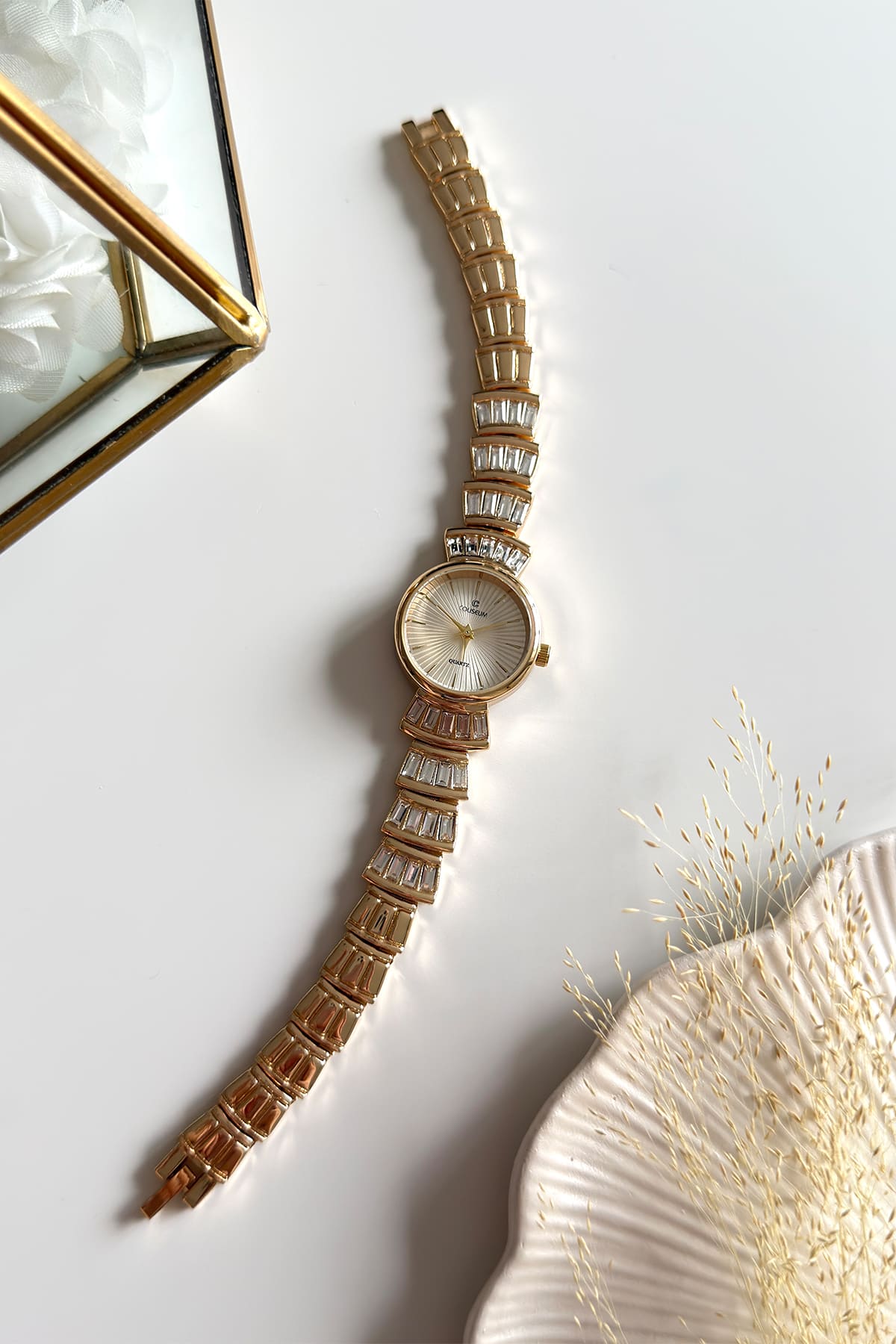 Zarafetin en rafine haliyle tanışın. Bu özel model, kordonuna işlenen baget kesim kristallerle klasik saat anlayışını bir adım öteye taşıyor. Hem modern hem de retro dokunuşları bir arada sunan tasarımıyla, bileğinizde adeta bir sanat eseri taşıyormuşsunuz hissi verir.