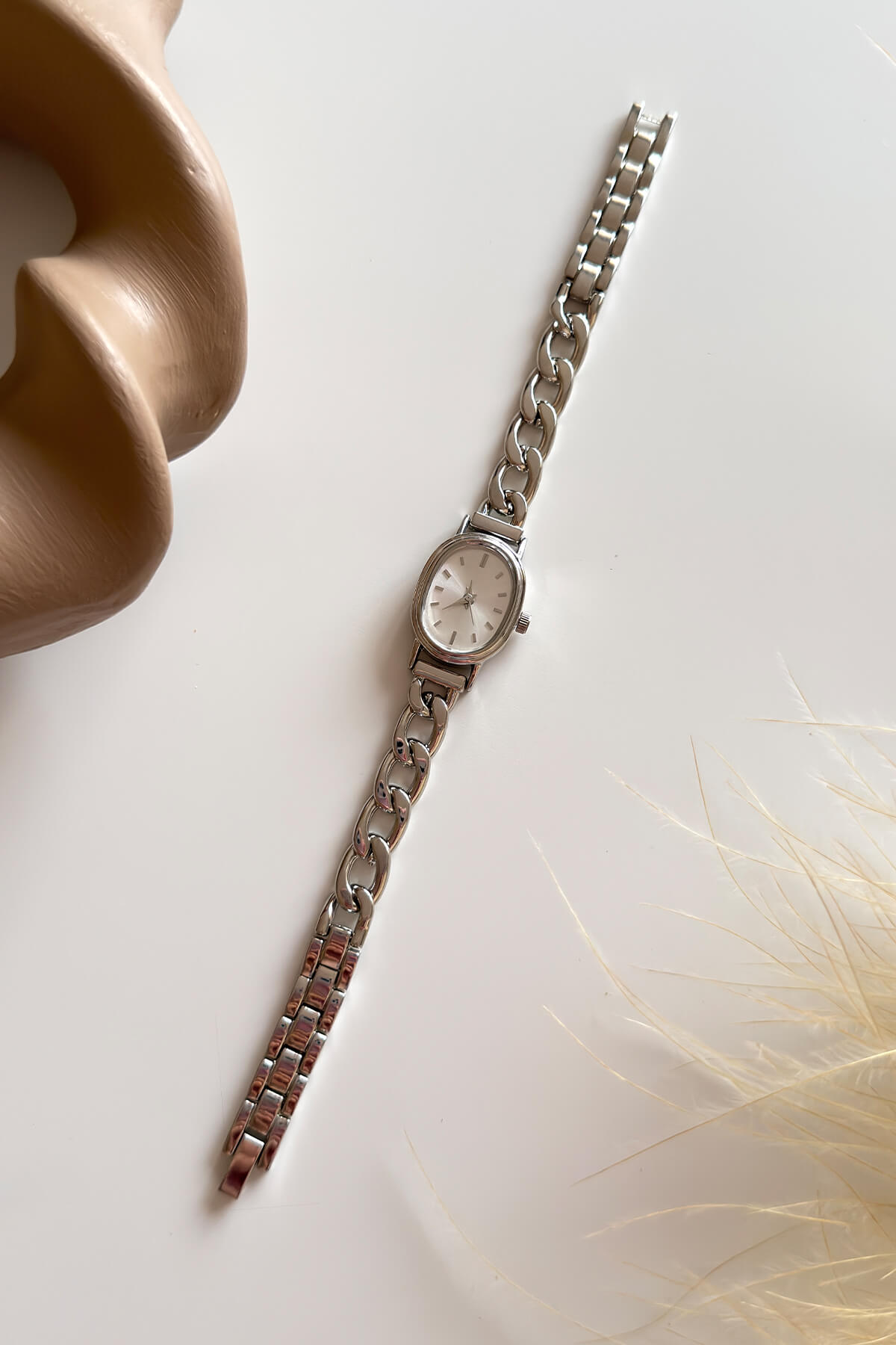 Gümüşün zamansız asaleti, Elsa serisinin zarif zincir detaylarıyla yeniden yorumlanıyor. Beyaz kadranın ferahlığı ve oval kasanın yumuşak hatları, bu modeli her dönem kullanılabilecek klasik bir parça haline getiriyor. Takı formundaki zincir kordonu sayesinde diğer aksesuarlarınızla mükemmel uyum sağlayan Florin, modern kadının naif stilini tamamlamak için tasarlandı.