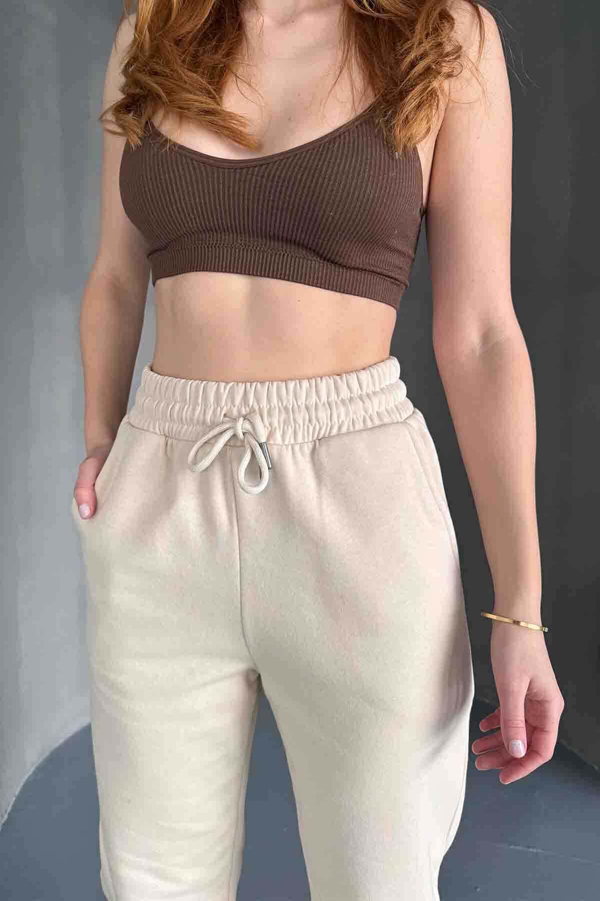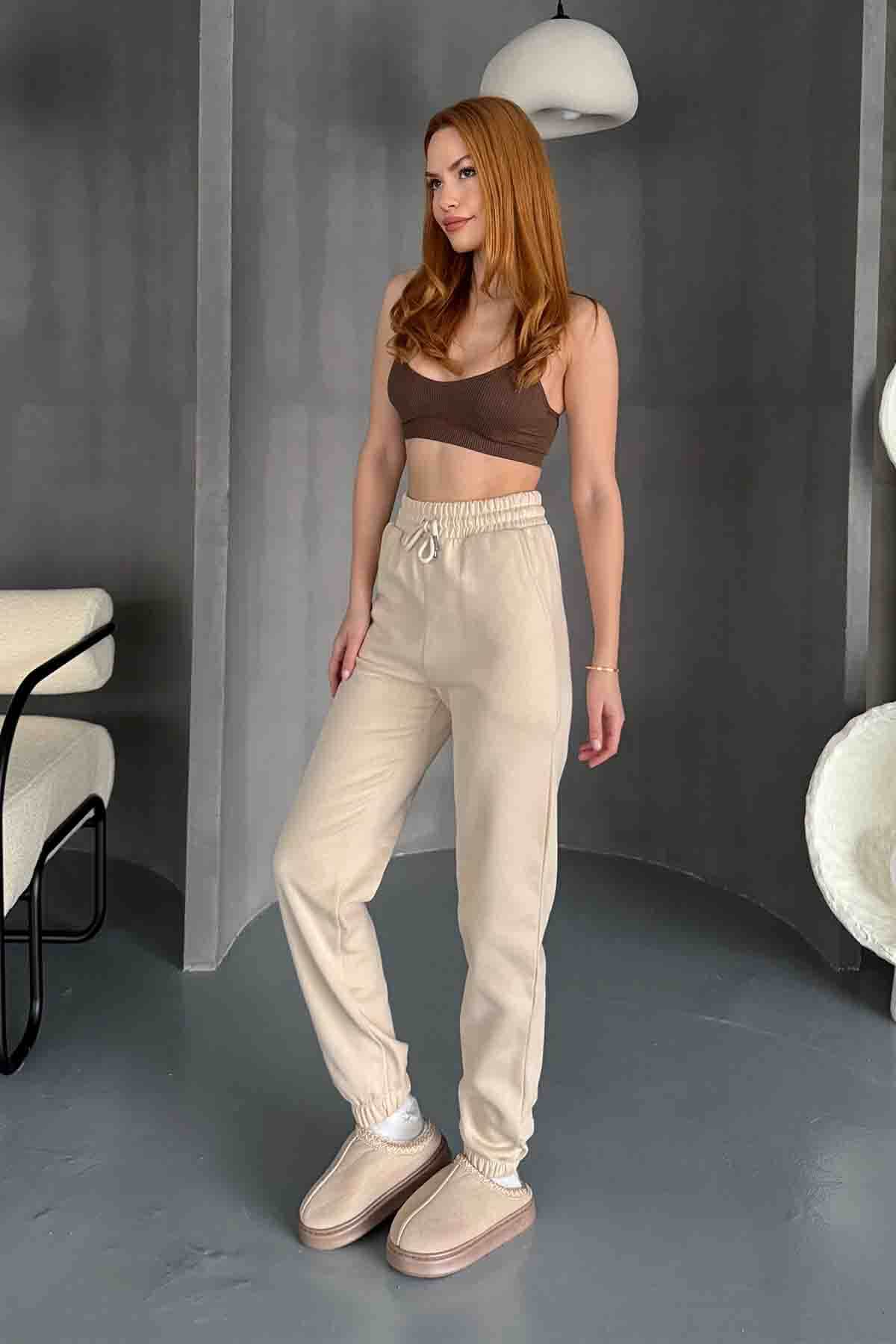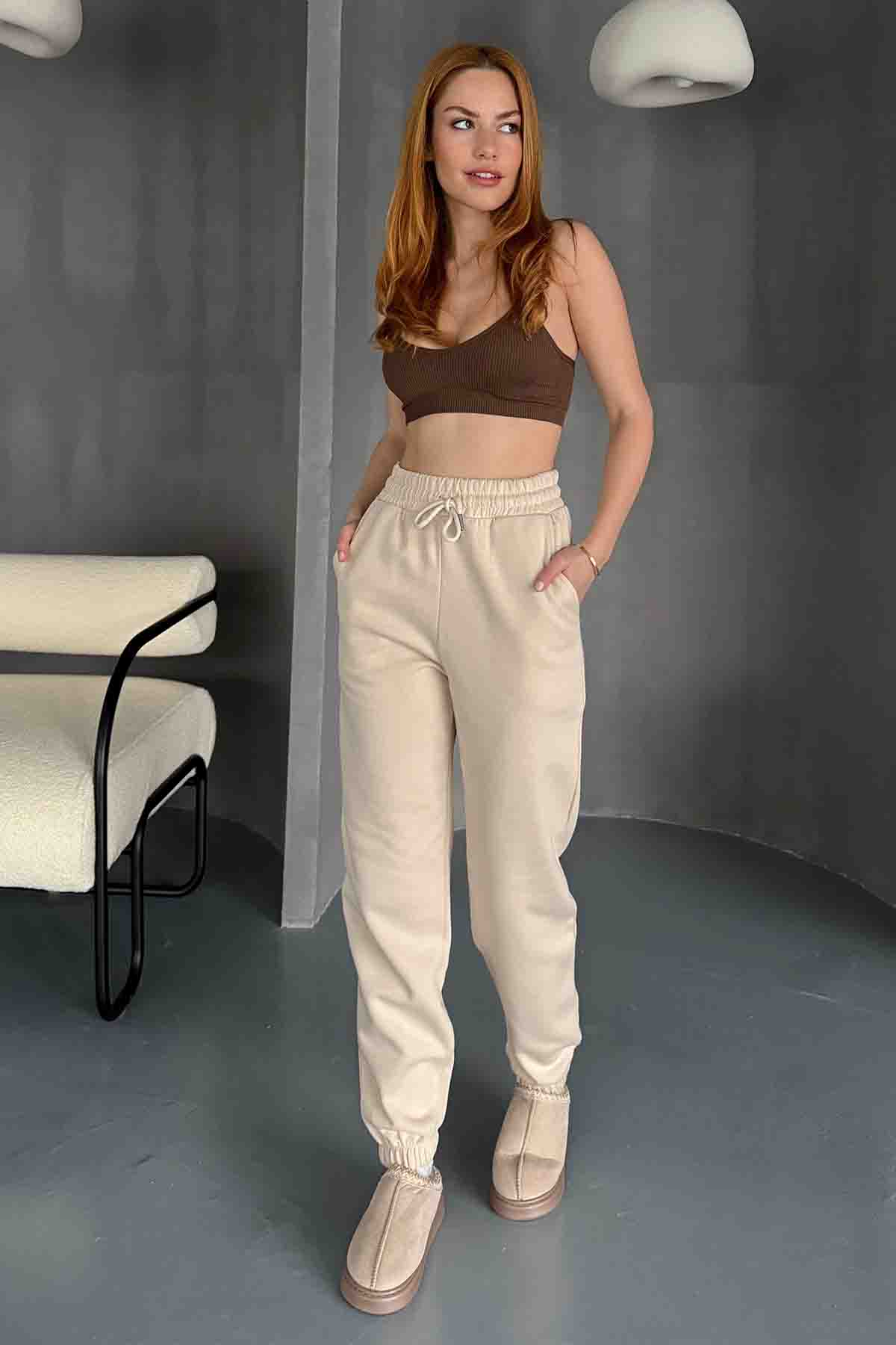 EŞF-09091 Krem Rengi İki İplik Şardonlu Jogger Eşofman