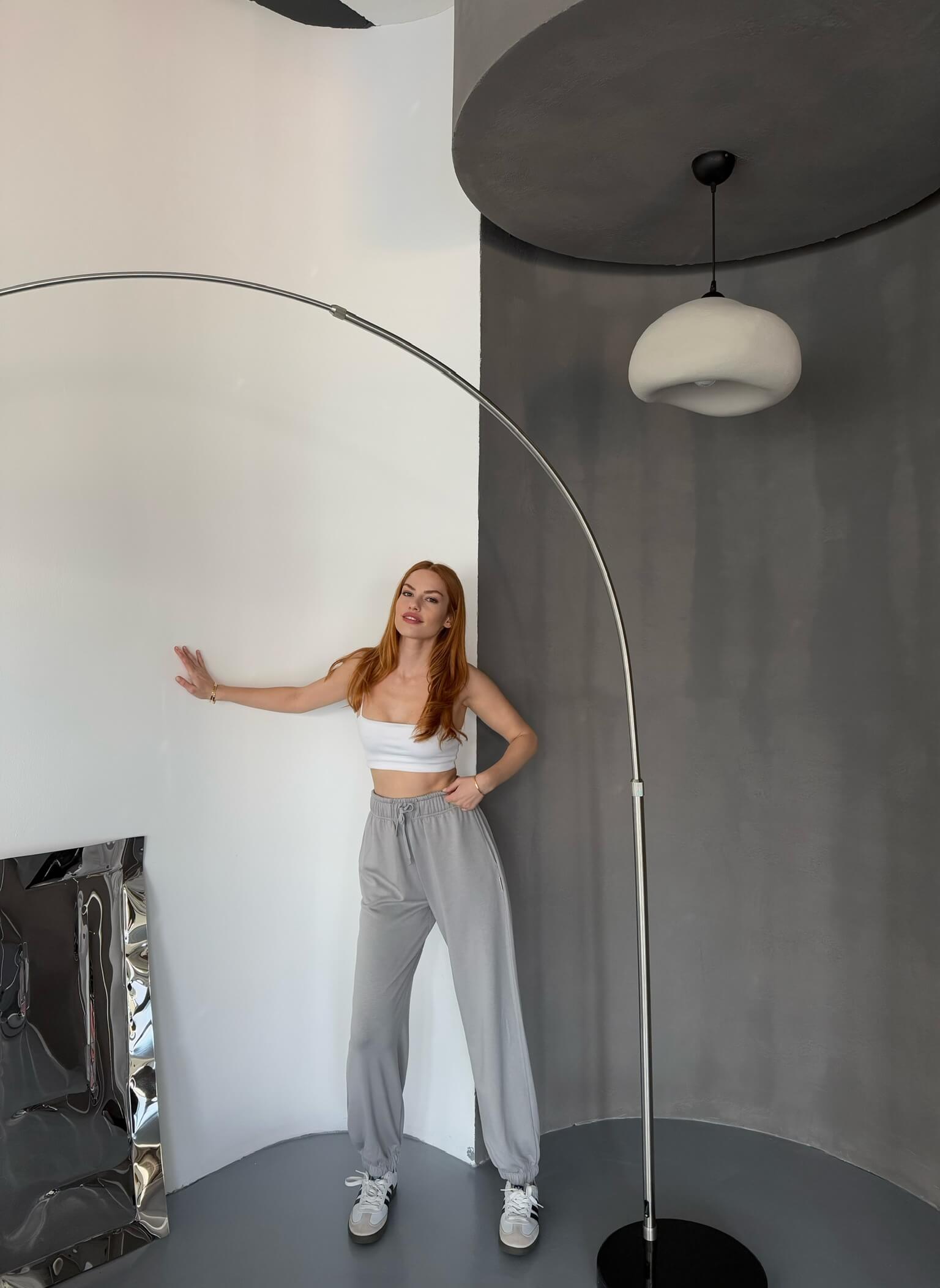 EŞF0010 Boyama Gri Modal Kumaş Paça Lastikli Jogger Eşofman Altı