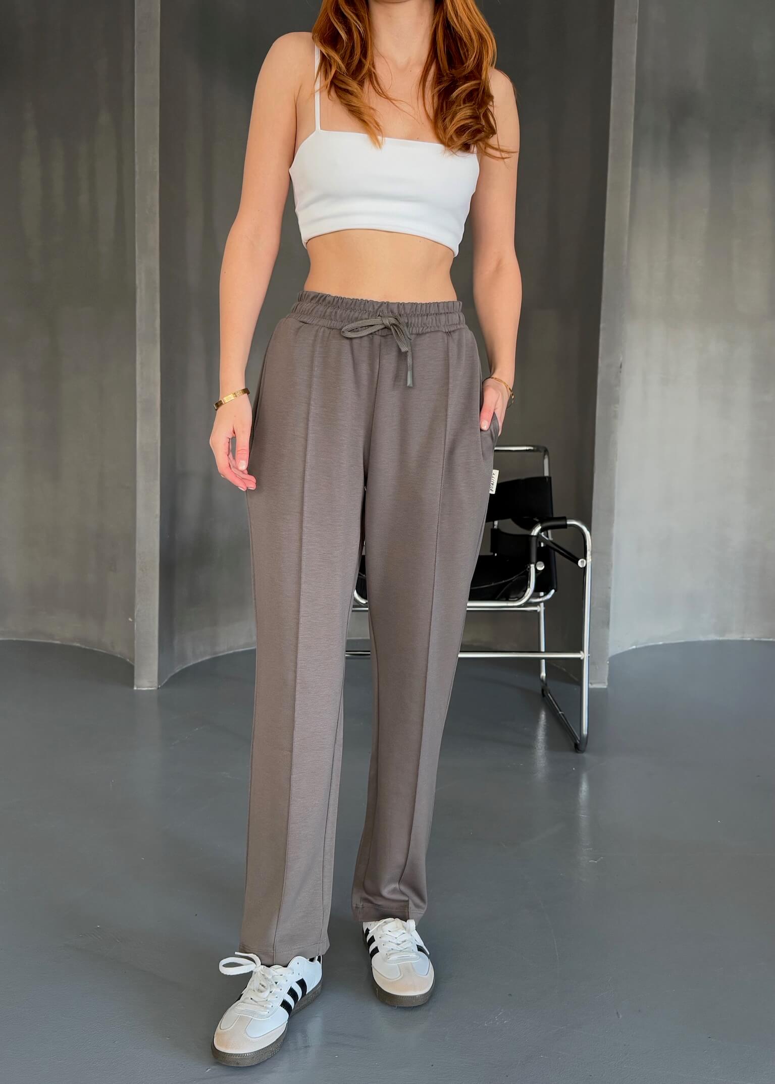 EŞF0011 Füme Havuç Model Modal Kumaş Çimalı Eşofman Altı