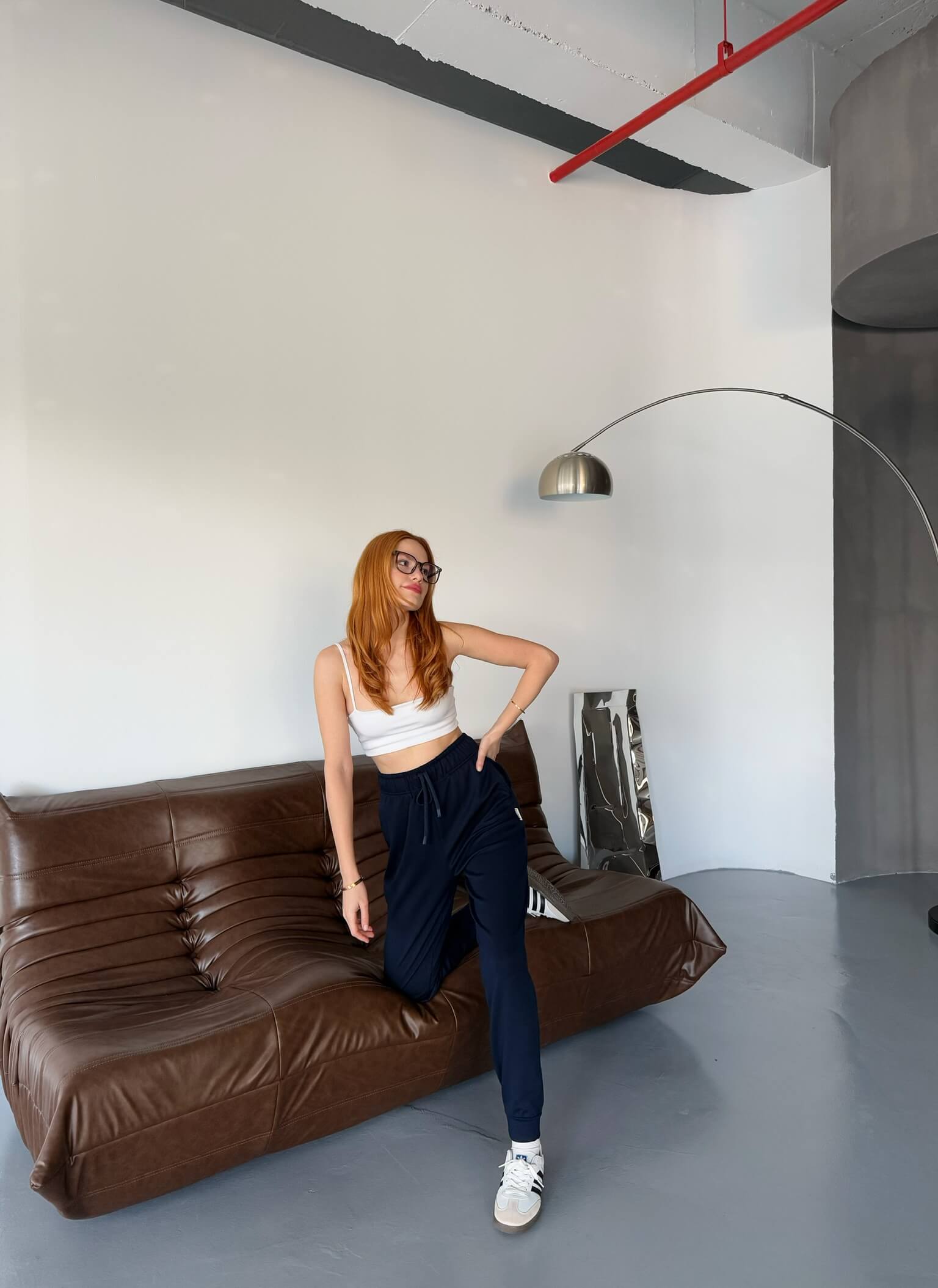 EŞF0012 Lacivert Modal Kumaş Düz Jogger Eşofman Altı