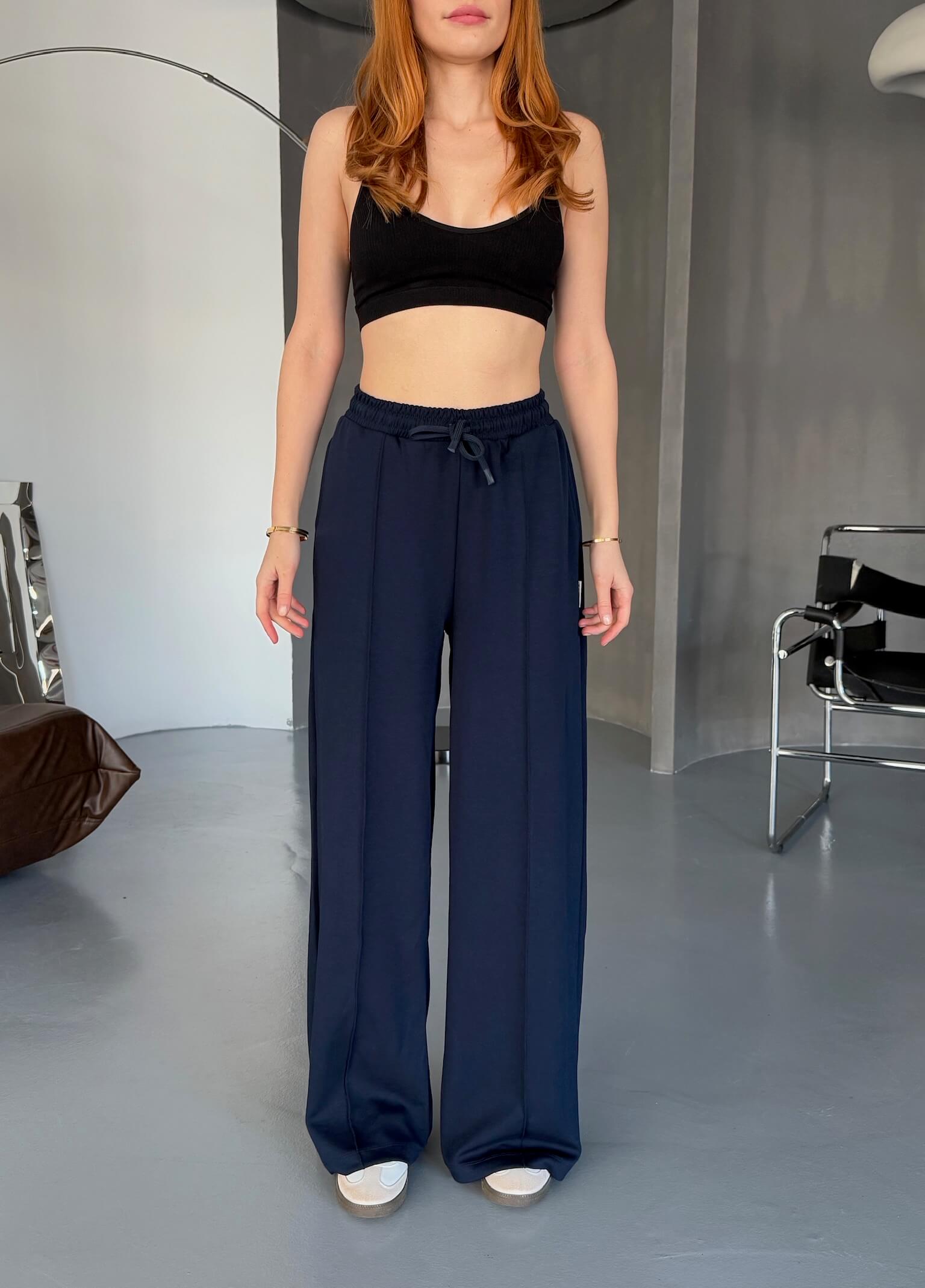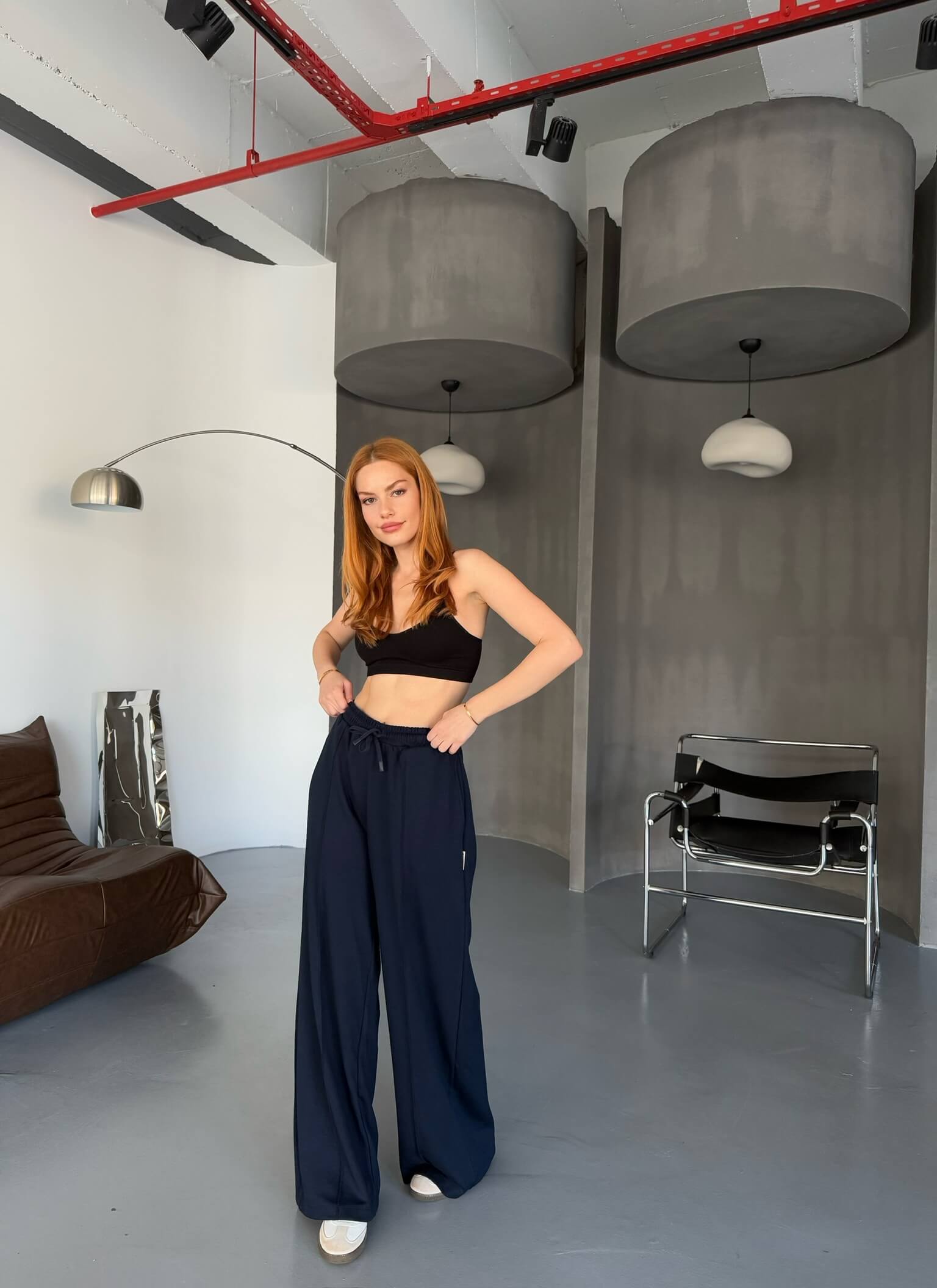 EŞF0017 Lacivert Modal Kumaş Bel Lastikli Salaş Çimalı Eşofman Altı