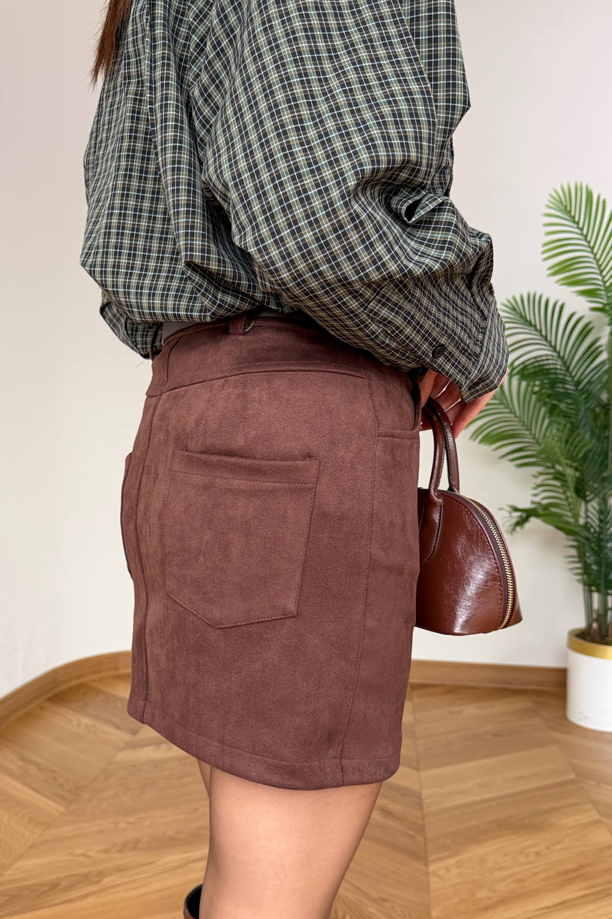 ETK-02343 Acı Kahve Cepli Nubuk Mini Etek