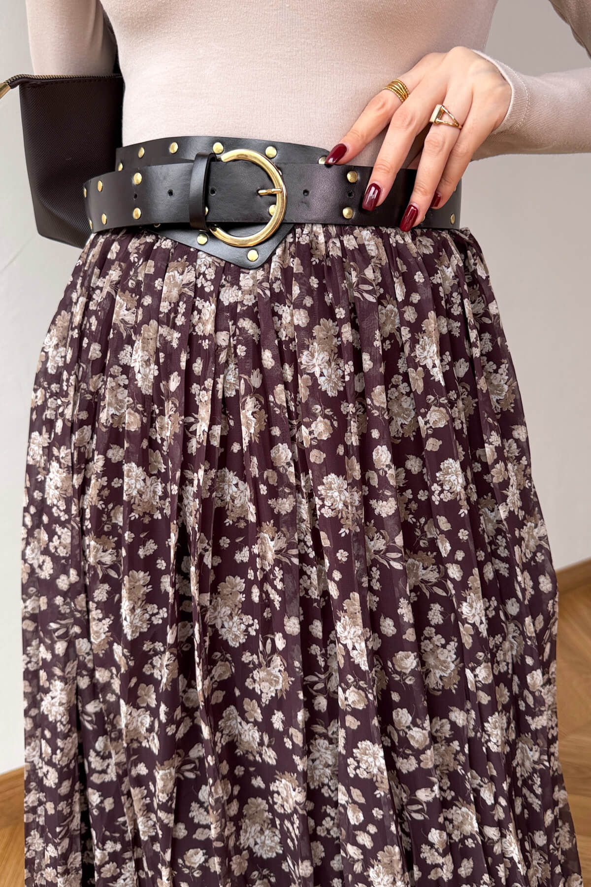 Tül kumaşın romantik ve hafif dokusunu, modern tasarım detaylarıyla buluşturan bu etek, mevsimin en zarif parçalarından biri. 100 cm’lik maxi boyu ve uçuşan formuyla her adımda büyüleyici bir silüet yaratır. İç göstermeyen astarlı yapısı konfor sunarken, belindeki şık kemer detayı vücut hatlarınıza zarif bir vurgu yapar. Kahve, mürdüm ve haki gibi zengin renk seçenekleriyle gardırobunuza sofistike bir dokunuş katmaya hazır.