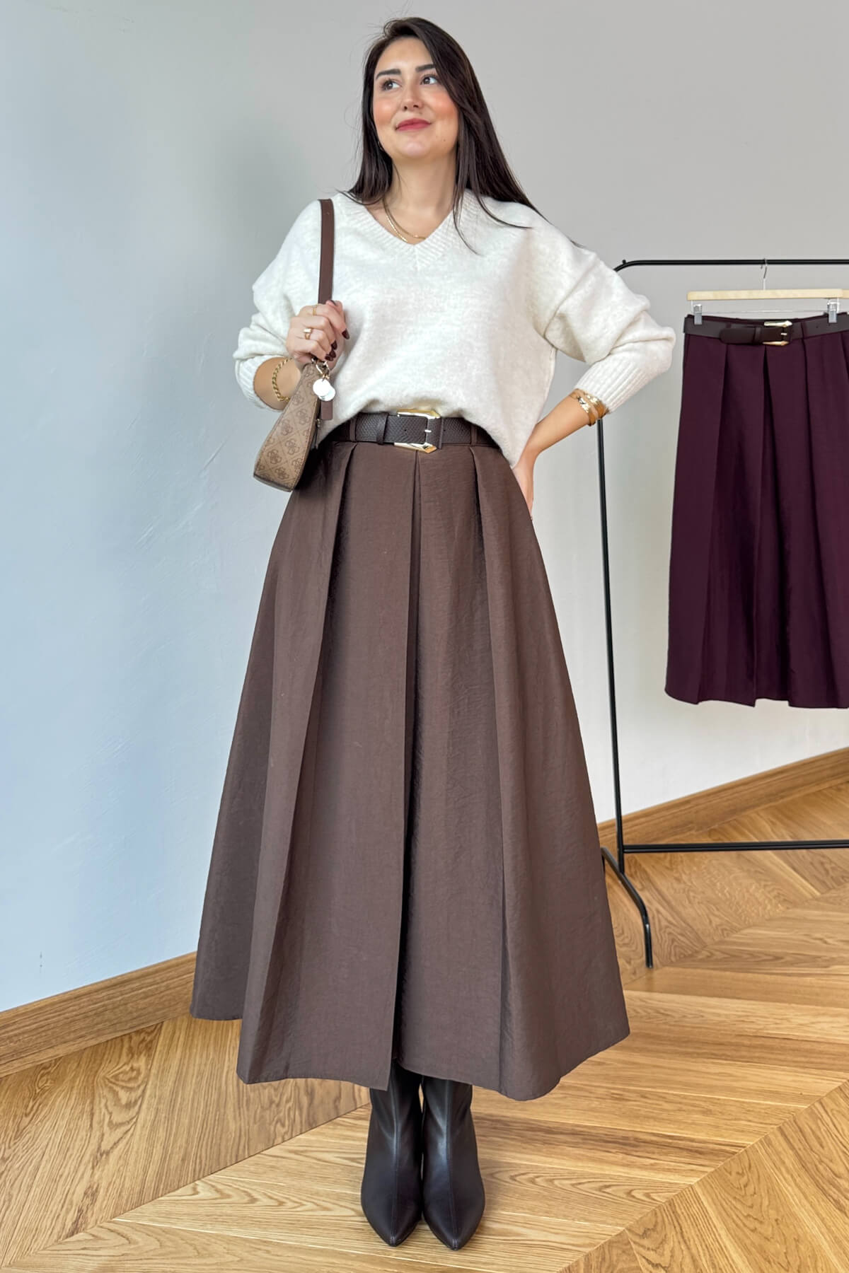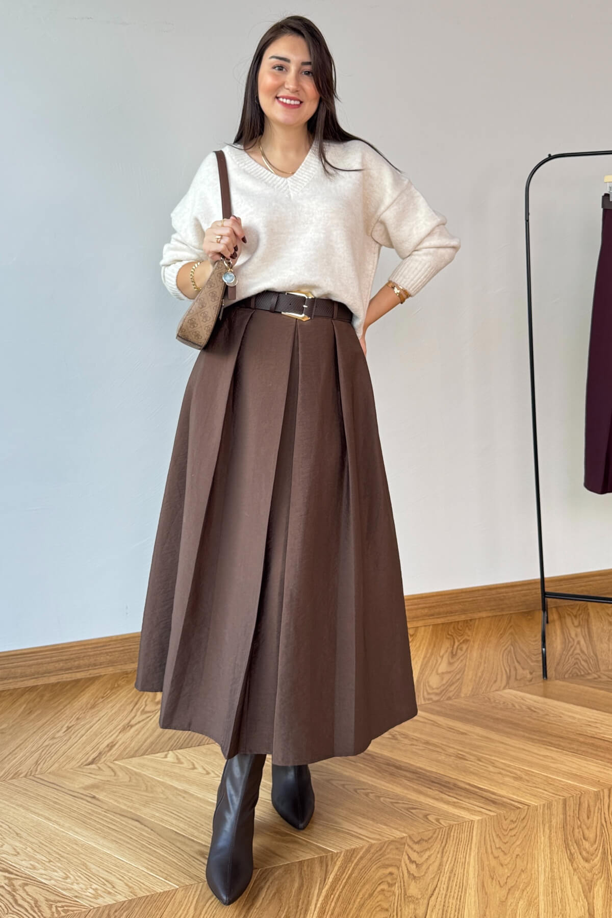 Kemerli bel detayı (39 cm) ile şık kombinler