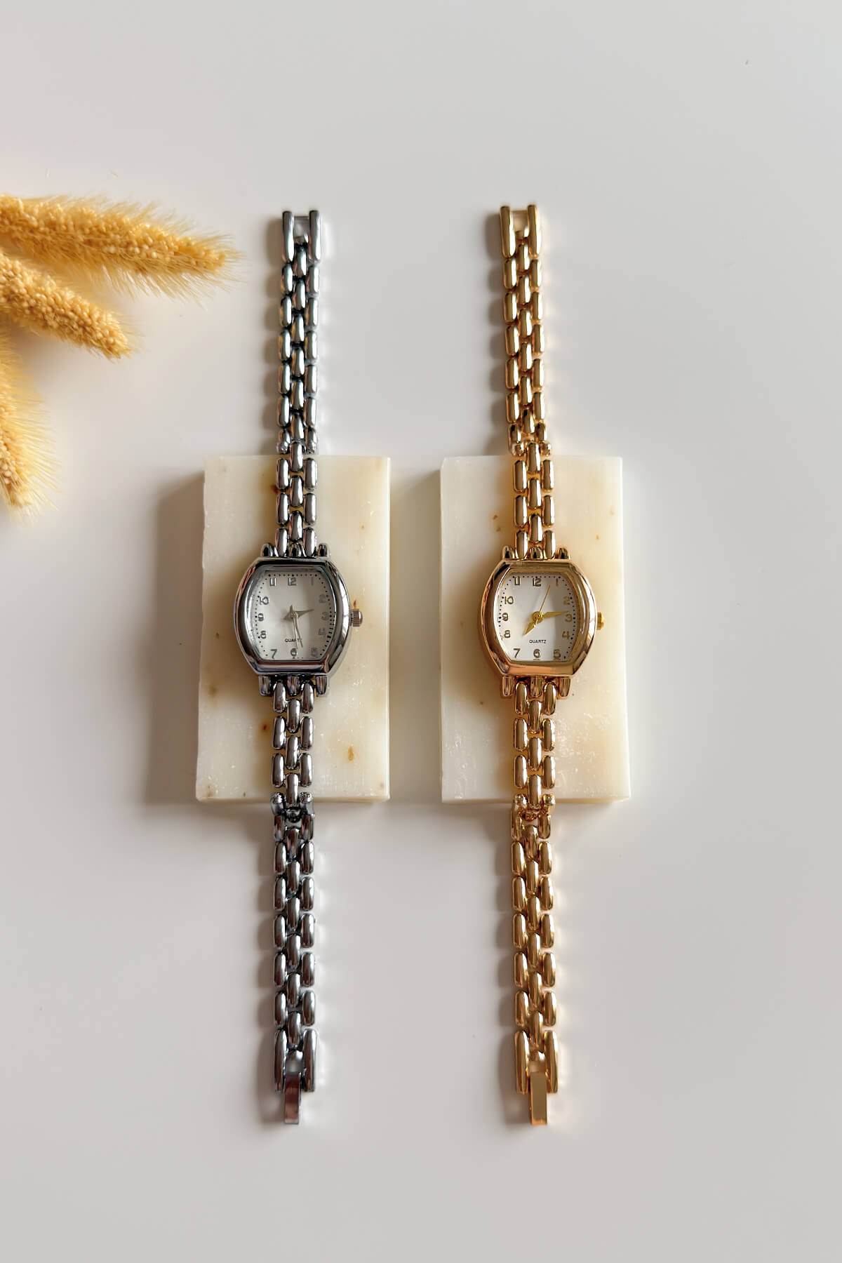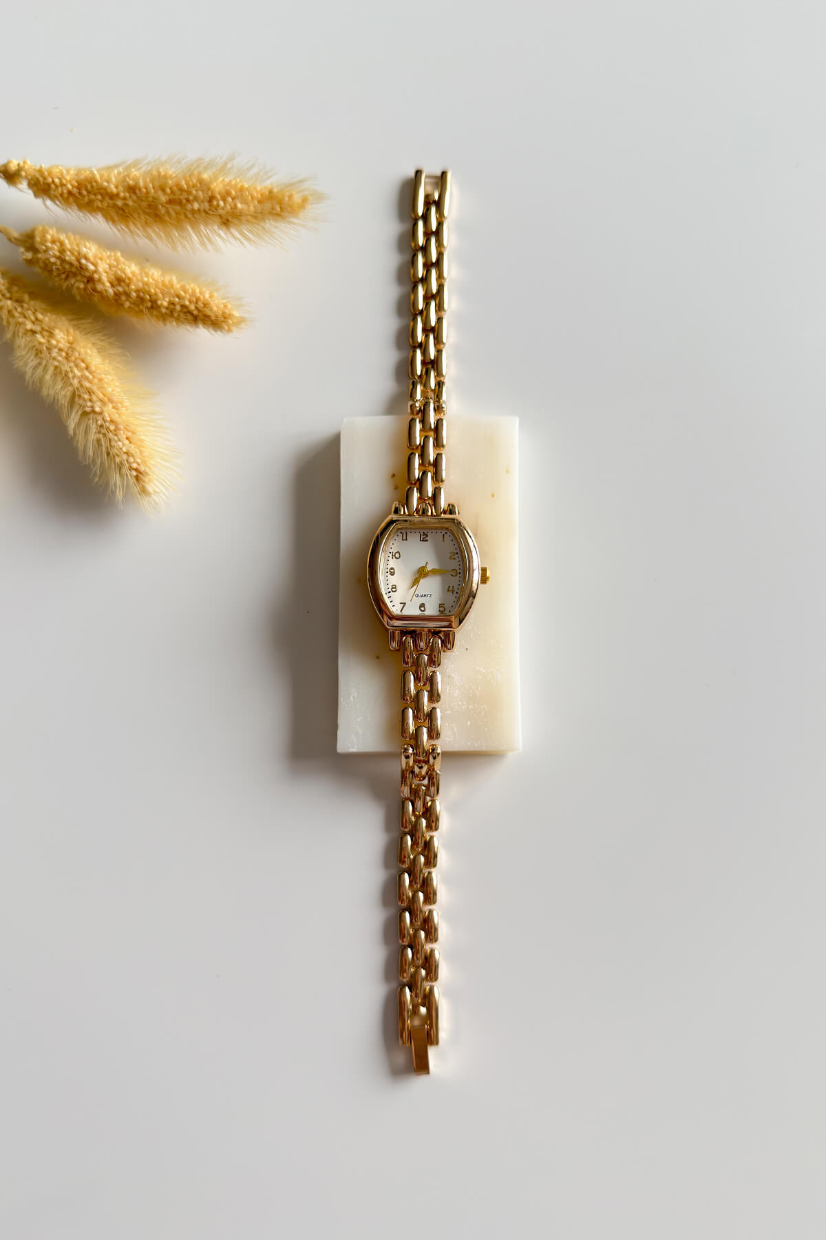 Fiona, yumuşak köşeli kare kasa tasarımıyla retro stili modern bir çizgiyle buluşturuyor. Beyaz kadran üzerindeki belirgin numerik indeksler okuma kolaylığı sağlarken, gold rengin ışıltılı metal kordonu bileğinizde zarif bir duruş sergiliyor. Hem ofis şıklığında hem de günlük kombinlerinizde rahatça kullanabileceğiniz bu model, sadeliği ve zarafeti bir arada arayan kadınlar için ideal bir tercih.