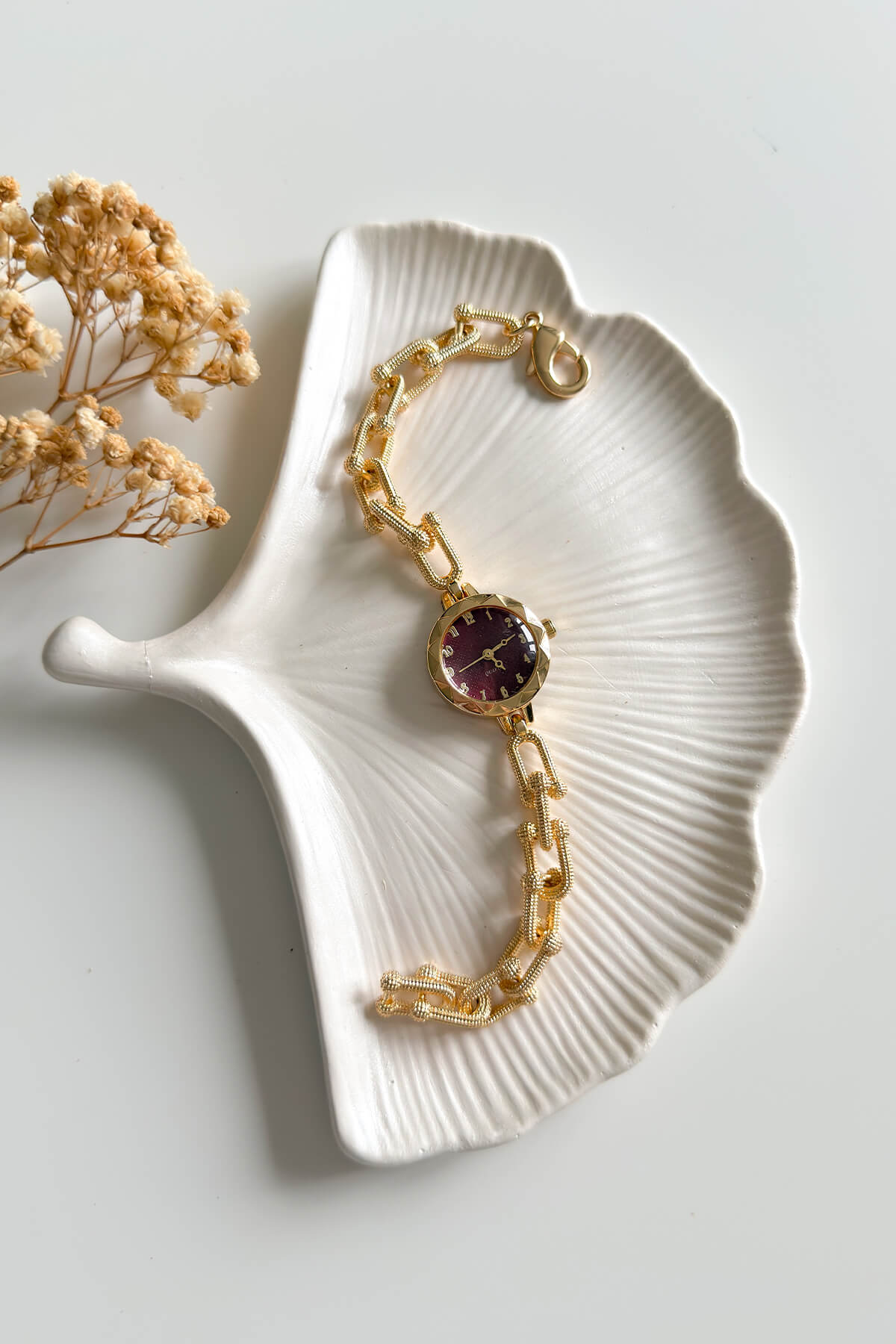 Minimal boyutu sayesinde bilekte son derece zarif duran bu model, hem günlük stilinizi tamamlar hem de özel anlarınızda şıklığınızı ön plana çıkarır. Saatten çok zarif bir aksesuar hissi veren tasarımıyla, stiline ince ama etkili dokunuşlar katmayı seven kadınlar için tasarlandı.