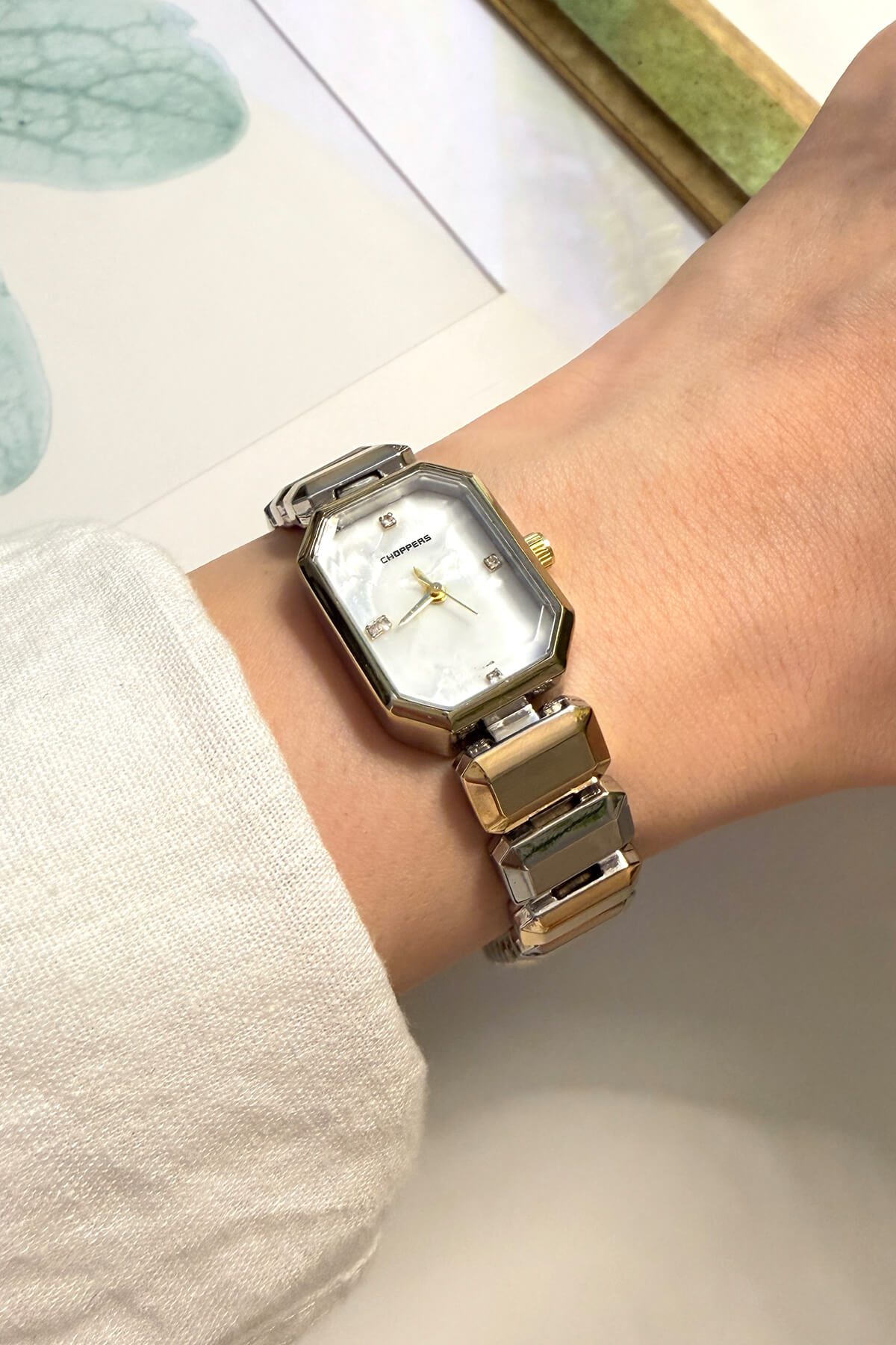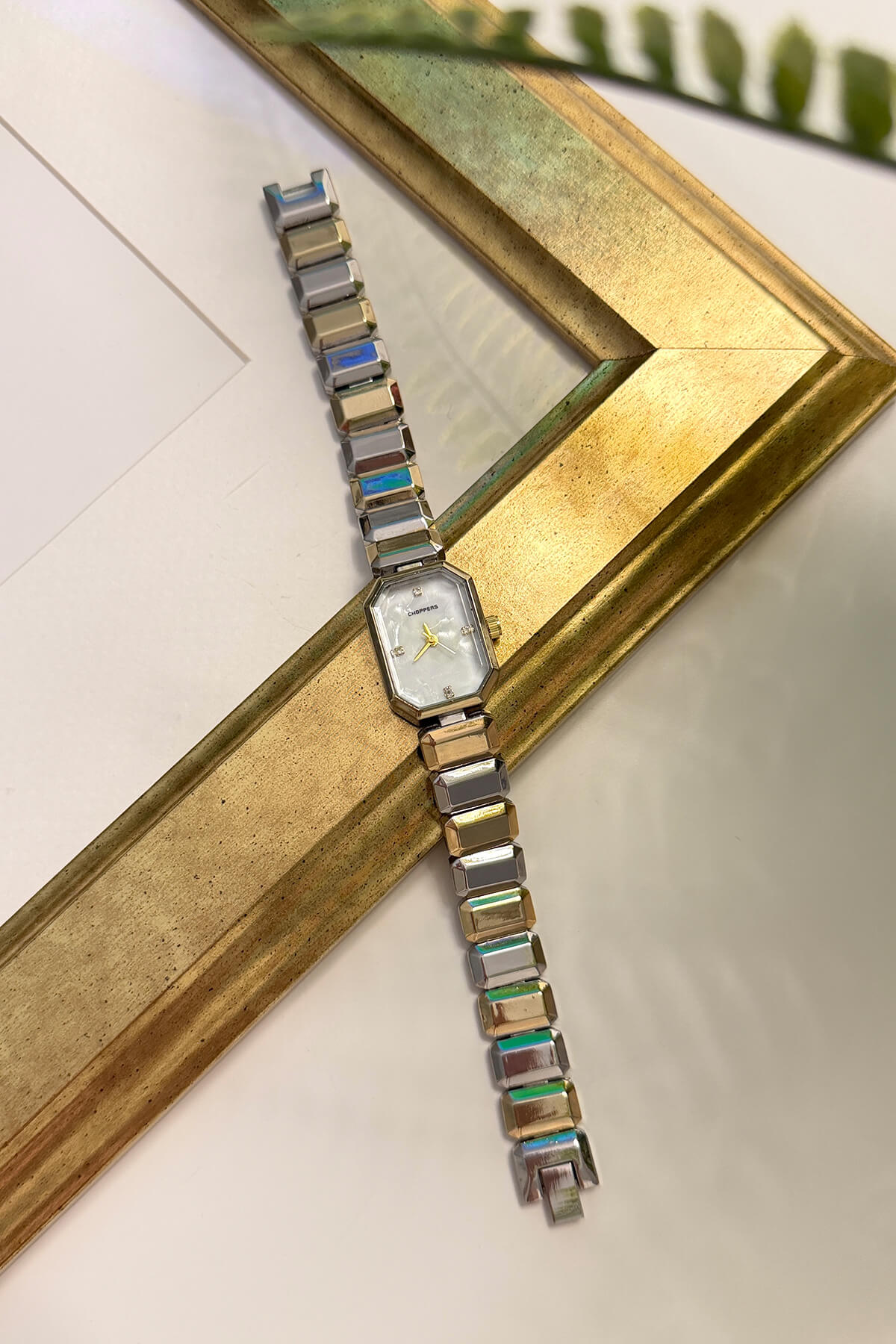 Klasik saat formlarını unutun! Dikdörtgen kasanın modern duruşu, kadranındaki taşların ışıltısıyla buluştu. Bu saat sadece zamanı değil, sizin ışıltınızı da yansıtacak. Bileğinizde bir bileklik zarafetiyle taşıyacağınız bu "it-piece" ile tanışın.