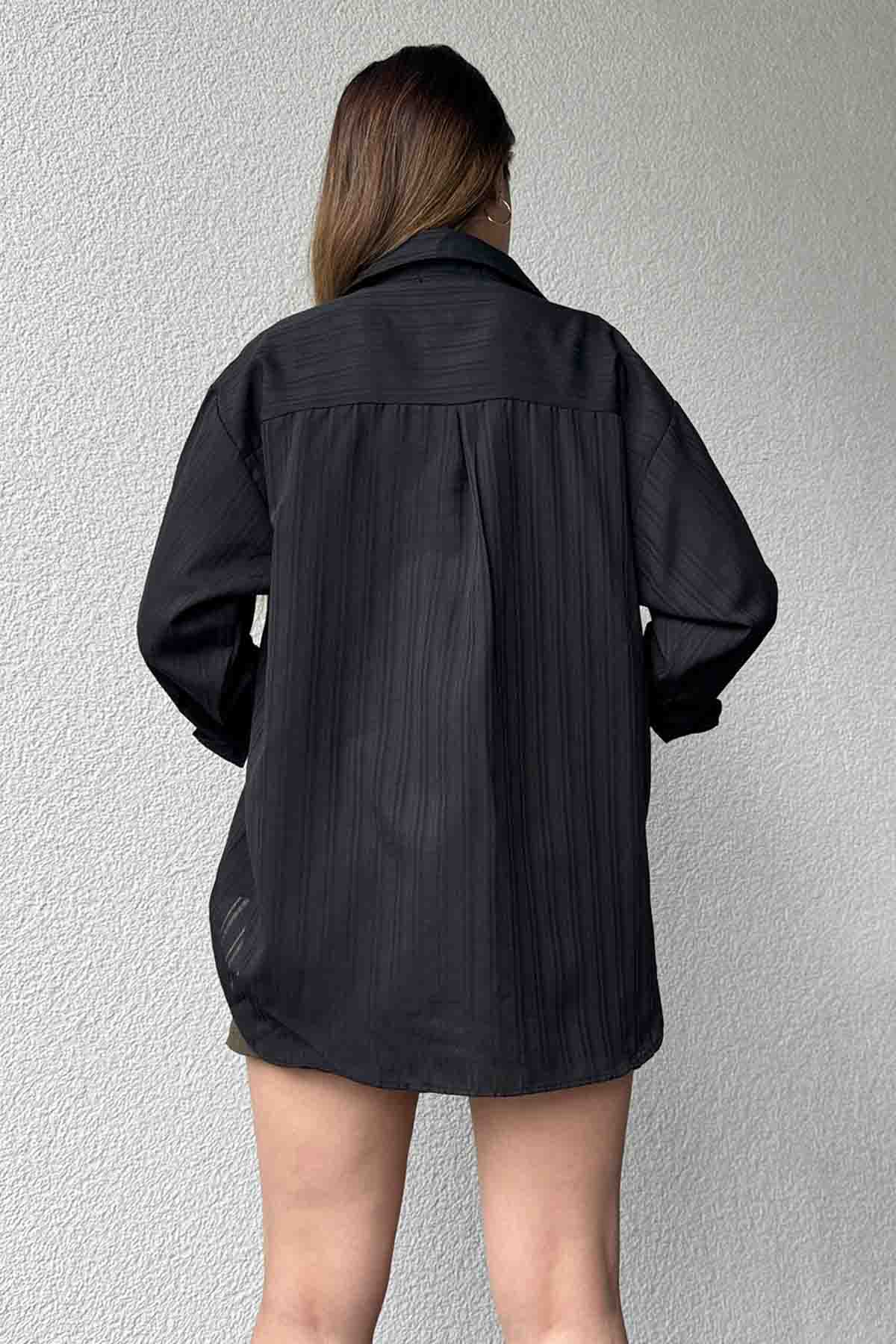 GML-10237 Siyah Çizgili Pamuklu Kumaş Gömlek