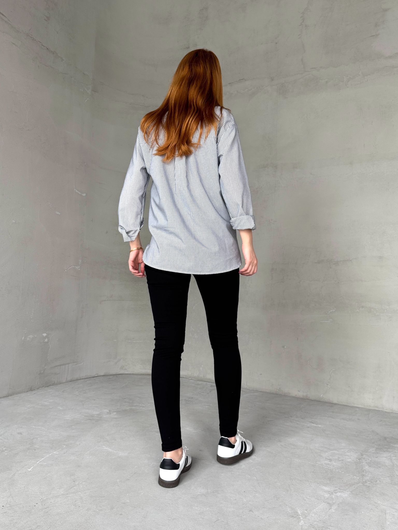 GML-10249 Siyah Çizgili Poplin Kumaş Salaş Gömlek