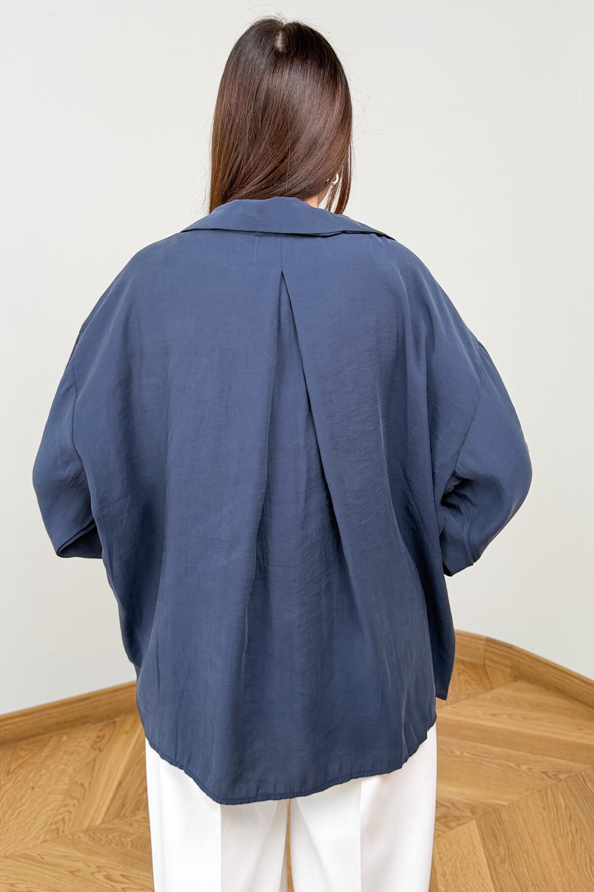 Tasarım Detayı: Tek göğüs cebi, klasik gömlek yaka ve tona ton düğme detayları.