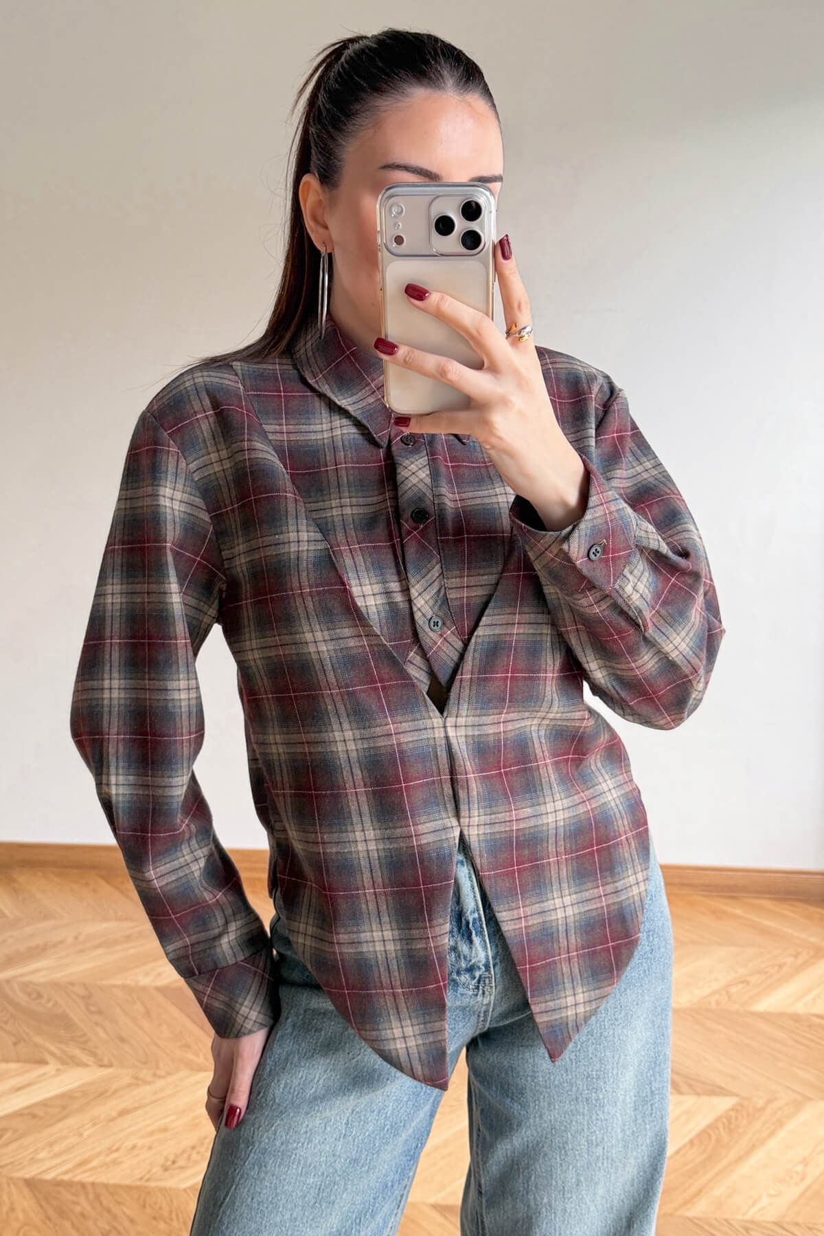 Klasik ekose desenini mimari bir tasarımla yeniden yorumlayan bu özel gömlek, güçlü omuz hattını vurgulayan vatka detaylarıyla stilinize karakter katıyor. %90 pamuk içeriğiyle cildinize nefes aldıran doğal bir dokunuş sunarken, %10 elastik yapısı sayesinde hareket özgürlüğünüzü kısıtlamadan vücuda mükemmel uyum sağlıyor. 65 cm’lik ideal boyu ve göğüs kısmındaki V formlu modern kesimi, sıradanlığın ötesine geçerek kombinlerinizde sofistike ve iddialı bir duruş sergiliyor.