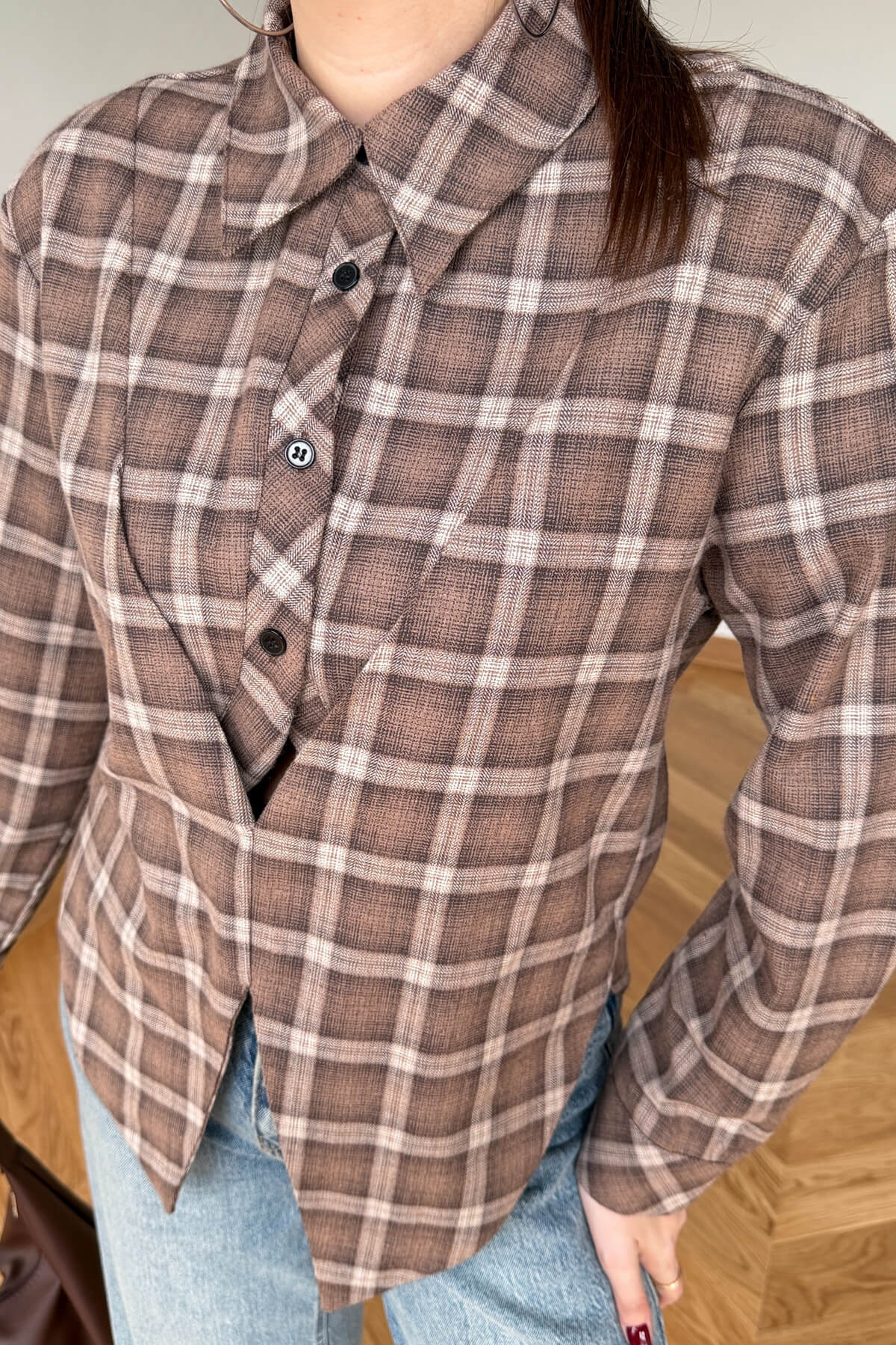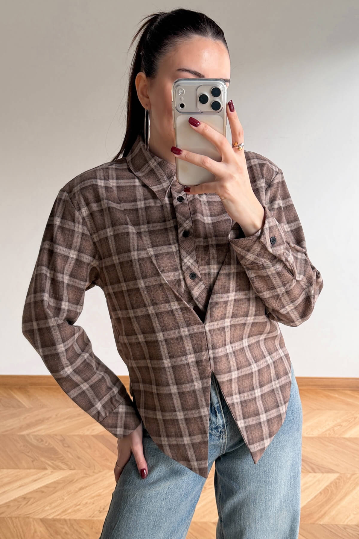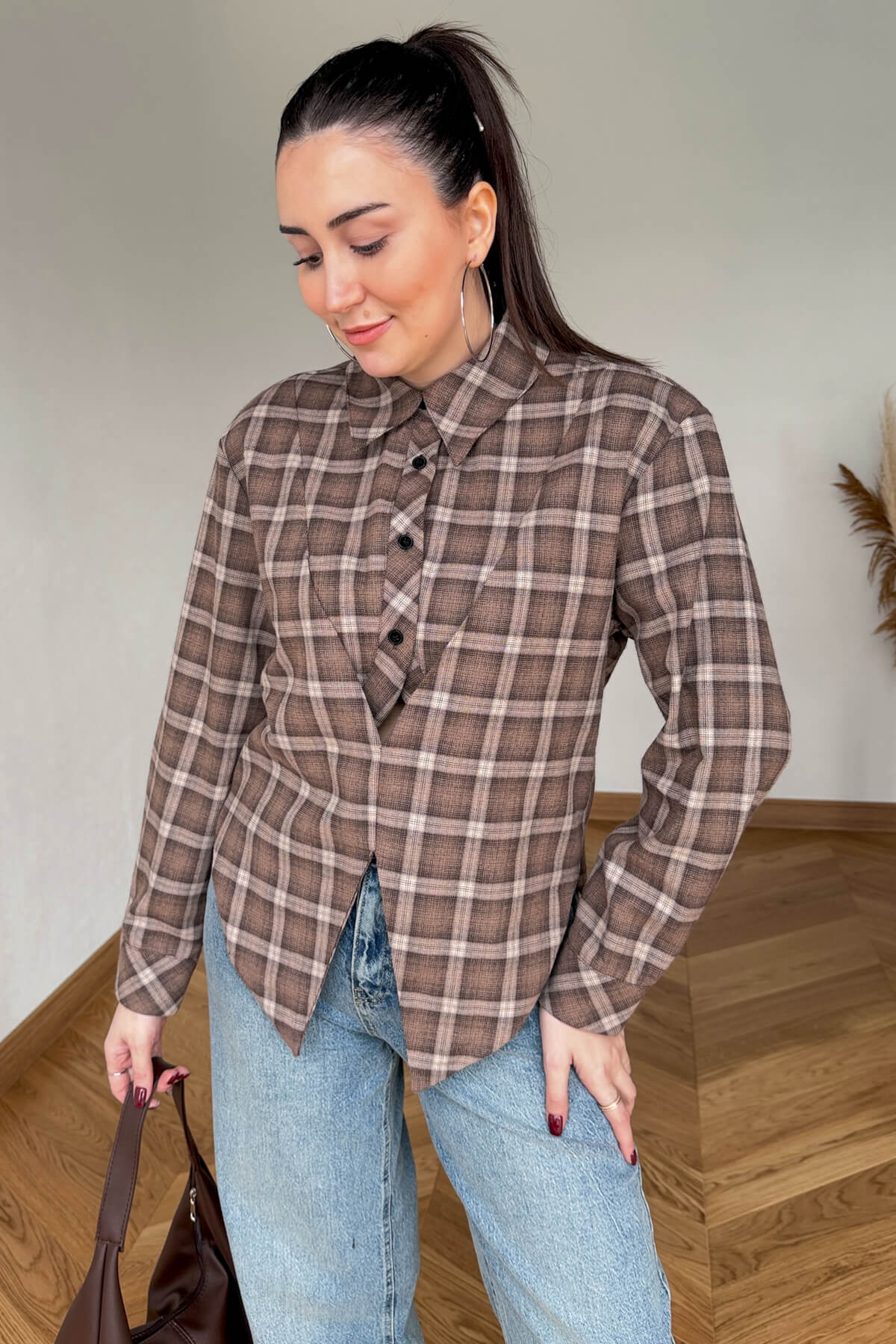 Klasik ekose desenini mimari bir tasarımla yeniden yorumlayan bu özel gömlek, güçlü omuz hattını vurgulayan vatka detaylarıyla stilinize karakter katıyor. %90 pamuk içeriğiyle cildinize nefes aldıran doğal bir dokunuş sunarken, %10 elastik yapısı sayesinde hareket özgürlüğünüzü kısıtlamadan vücuda mükemmel uyum sağlıyor. 65 cm’lik ideal boyu ve göğüs kısmındaki V formlu modern kesimi, sıradanlığın ötesine geçerek kombinlerinizde sofistike ve iddialı bir duruş sergiliyor.