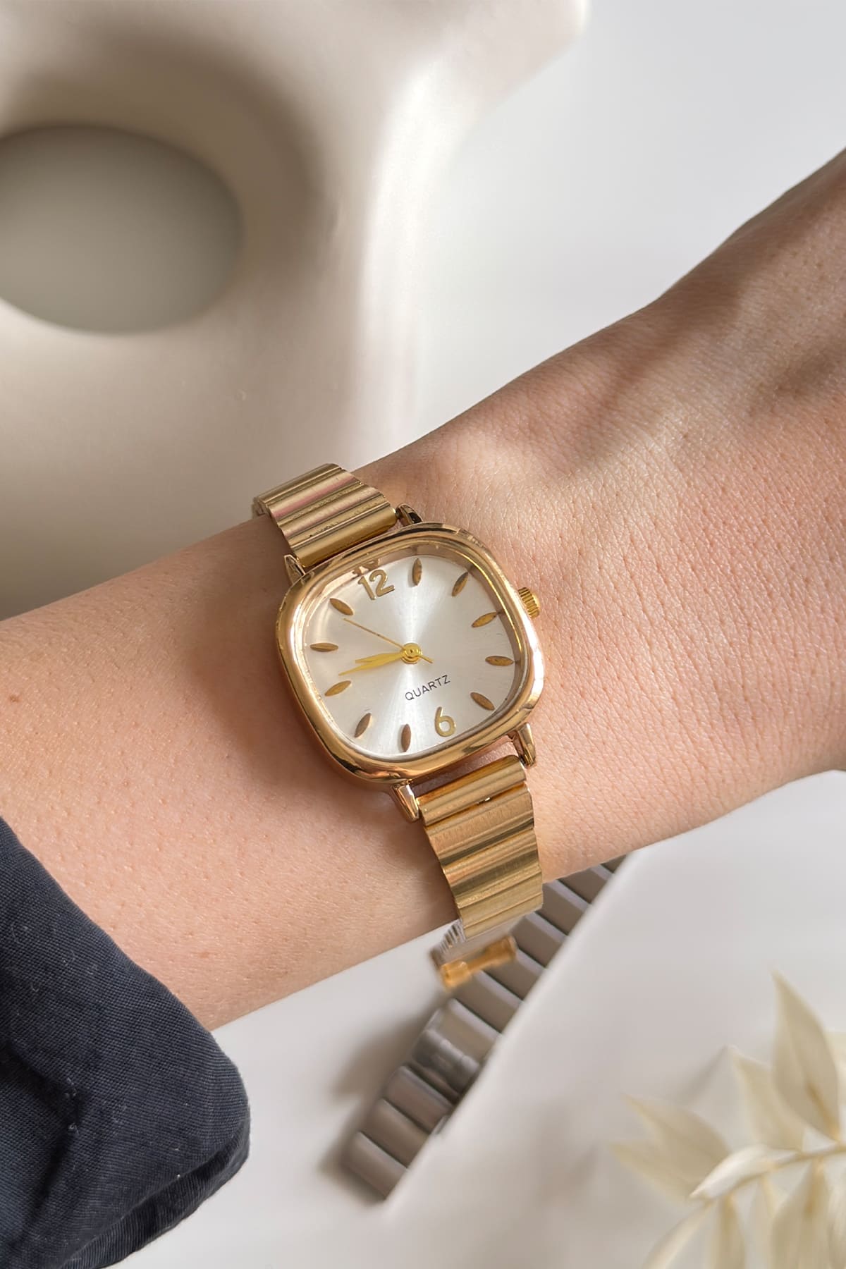 Retro ruhunu modern bir dokunuşla yeniden yorumlayan bu özel tasarım, zarif hatlarıyla bileğinizde bir mücevher etkisi yaratıyor. Köşeli ve yumuşak geçişli kasa yapısı, güneş ışını desenli kadranıyla birleşerek her ışıkta farklı bir ışıltı sunuyor. Hem klasik hem de minimal tarzlara mükemmel uyum sağlayan bu saat, dayanıklı çelik yapısı ve ince kordon tasarımıyla stilini detaylarda gizlemeyi seven kadınlar için ideal bir tercihtir.