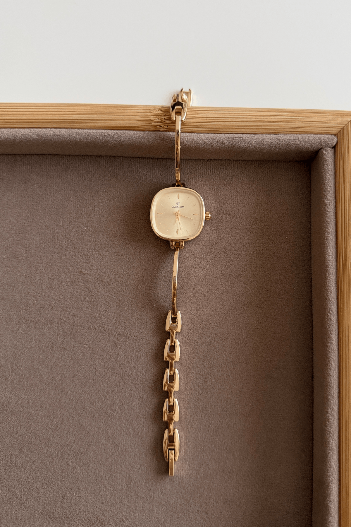 Klasik saat tasarımının en ikonik formuyla tanışın. Kavisli kare kasası, vidalı çerçeve detayları ve çok parçalı metal kordonuyla bu model, bileğinizde sadece bir saat değil, bir prestij göstergesi olarak duracak. Roma rakamlı kadranı ve altın renginin kusursuz ışıltısı, her kombininizi bir üst seviyeye taşımaya hazır. Zamansız bir yatırım, tükenmeyen bir şıklık.