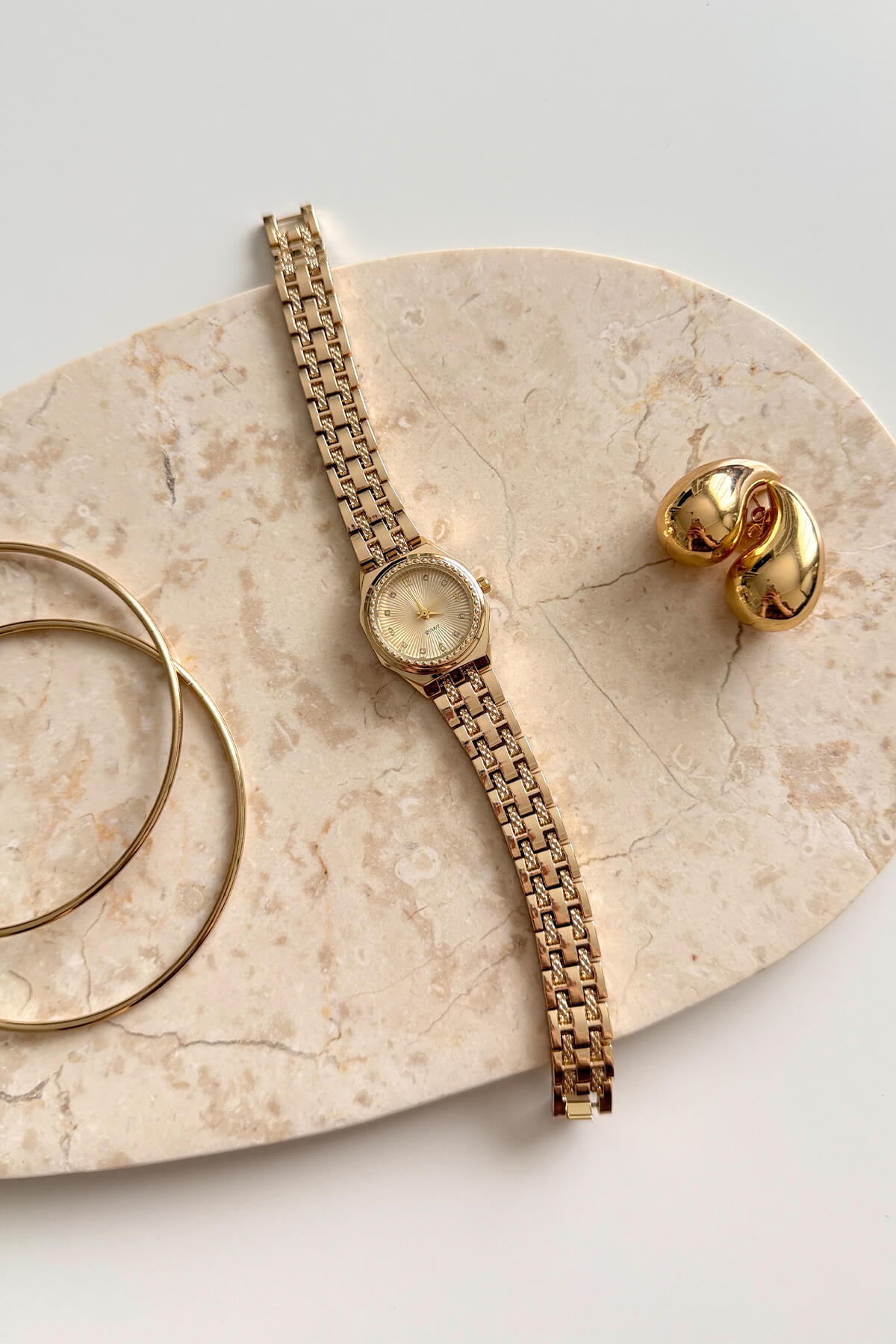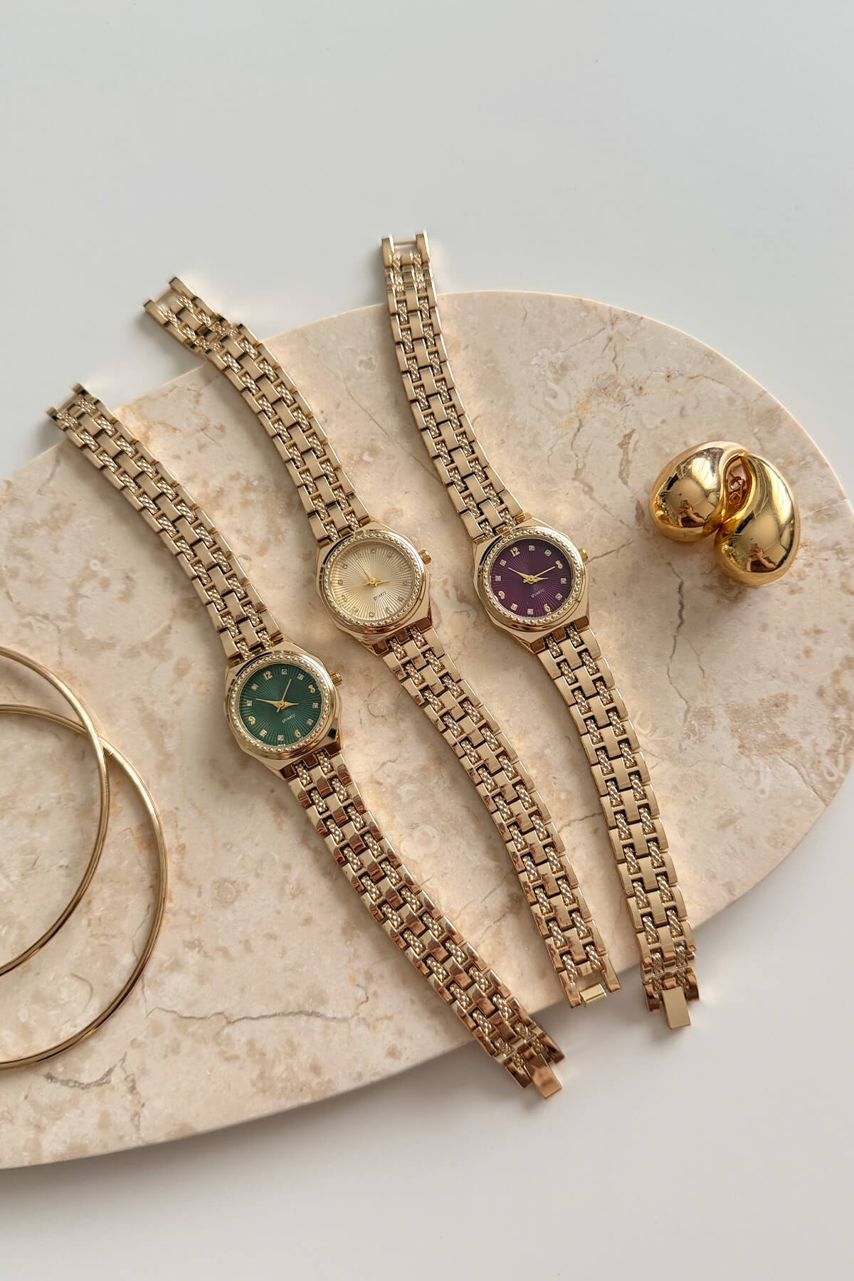 Altın renginin sıcaklığı, özel dokulu kordon işçiliği ve karakteristik tırtıklı çerçeveyle buluşuyor. Zümrüt yeşili, asil mor ve sedef beyazı kadran seçenekleri, minimalist taş detaylarıyla zenginleştirildi. Hem bir saat hem de bileğinizde parlayan bir mücevher zarafetindeki bu model, stilinize sofistike ve yüksek segment bir dokunuş katmak için tasarlandı.
