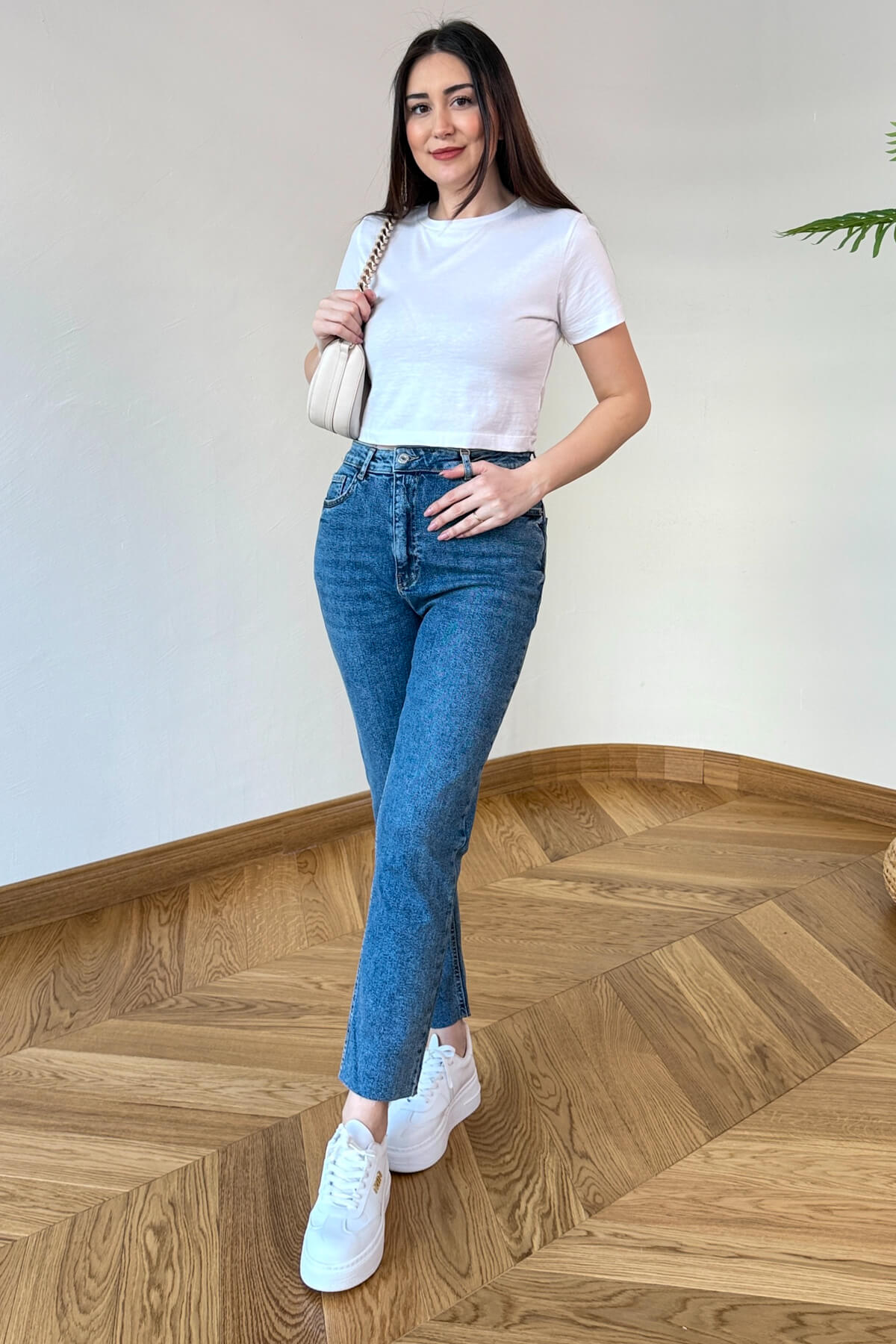 Modern şehir stilini denim konforuyla birleştiren bu jean, kesik paça detayıyla dinamik ve güncel bir görünüm sunuyor. 95 cm boyuyla bilek hizasında biten zarif bir duruş sergilerken, yüksek bel kesimi sayesinde silüetinizi toparlayarak daha ince bir form kazandırıyor. Lacivert, siyah ve taşlı mavi renk seçenekleriyle her kombine uyum sağlayan bu parça, kaliteli denim dokusuyla hem günlük koşturmacada hem de hafta sonu şıklığında vazgeçilmeziniz olacak.