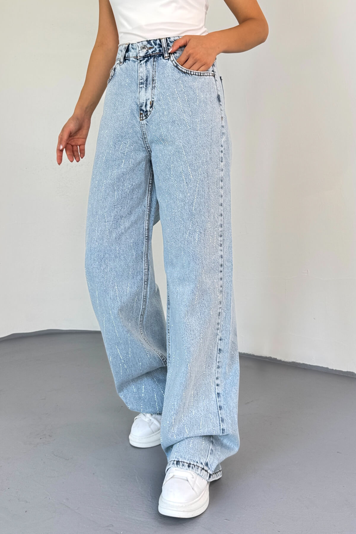 Açık mavi denim kumaş ile modern ve fresh bir görünüm.