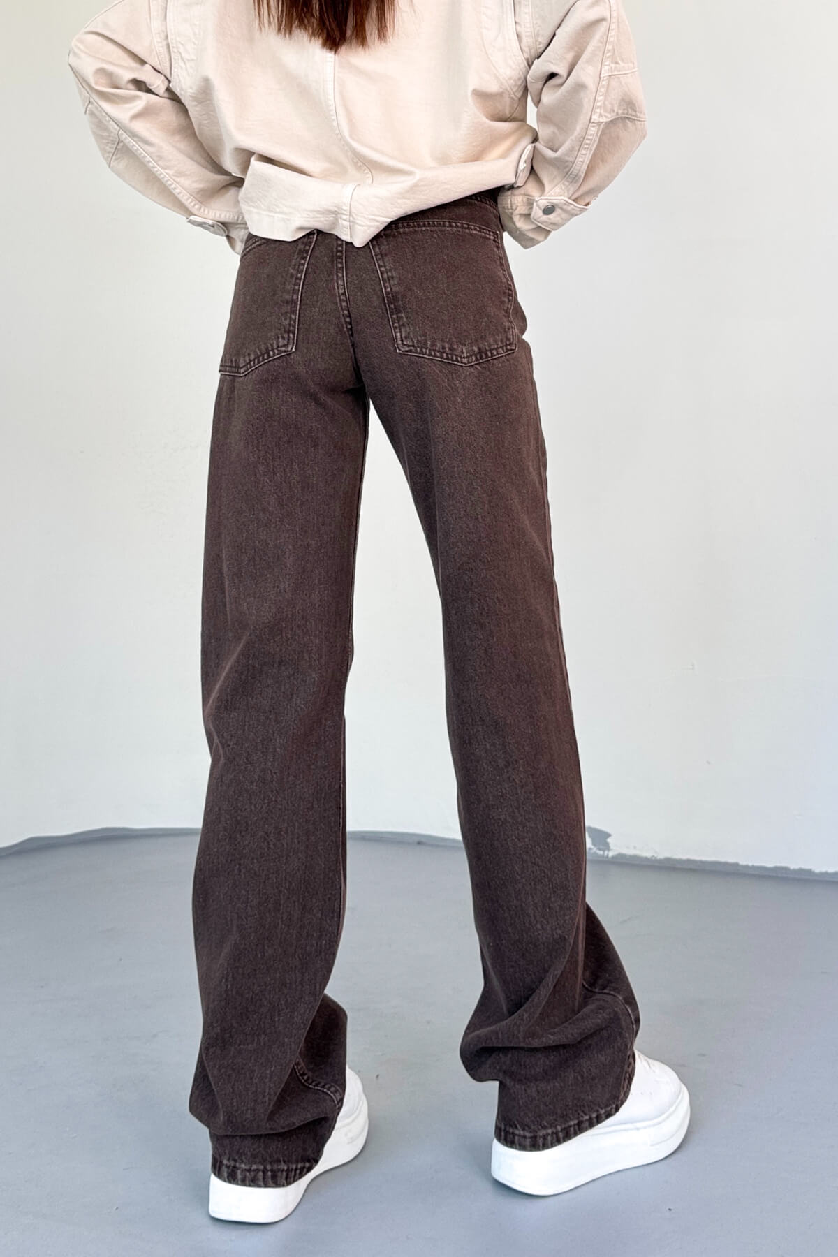 JEAN-488 Acı Kahve Yıkamalı Basic Mom Jean