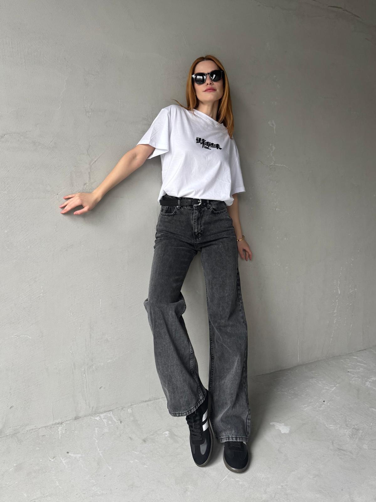 JEAN-08127 Füme Kot Kumaş Yüksek Bel Palazzo Jean