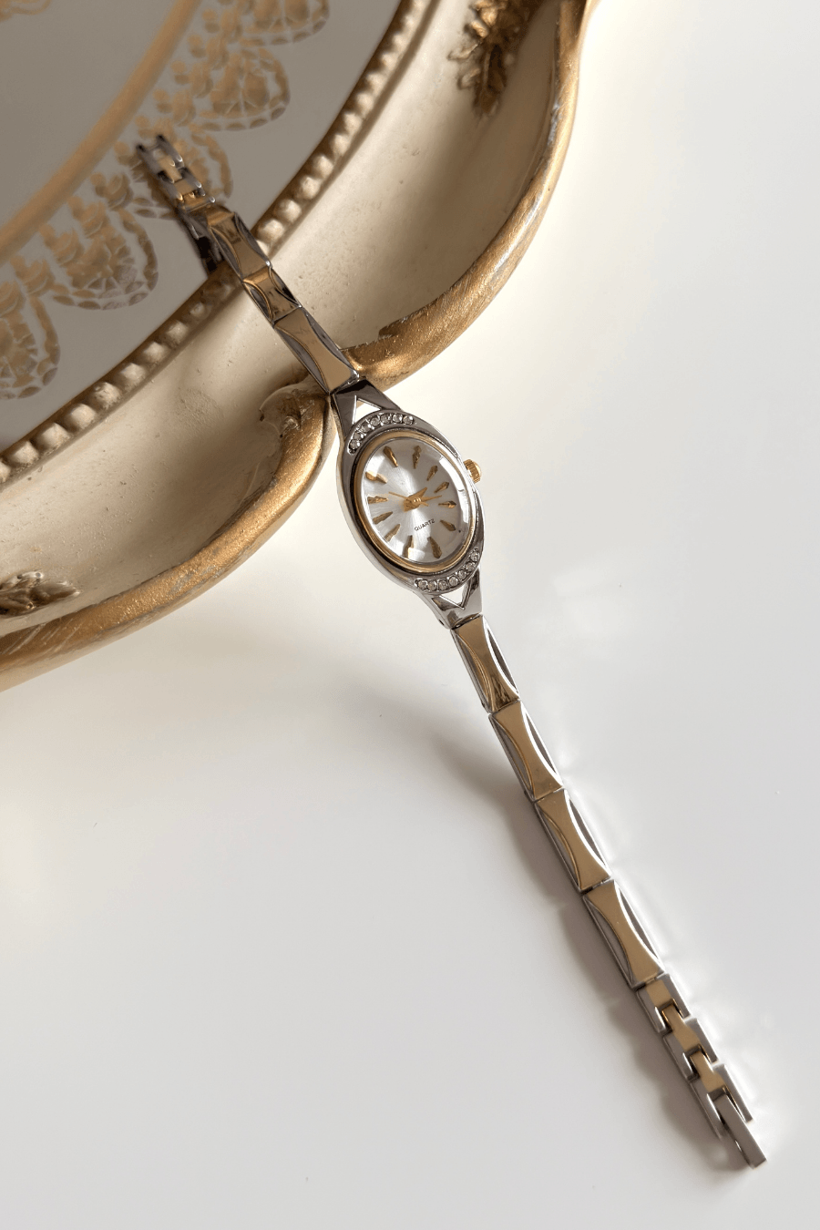 Malzeme: Gümüş-Gold detaylı metal kasa ve taş detaylı ince metal kordon