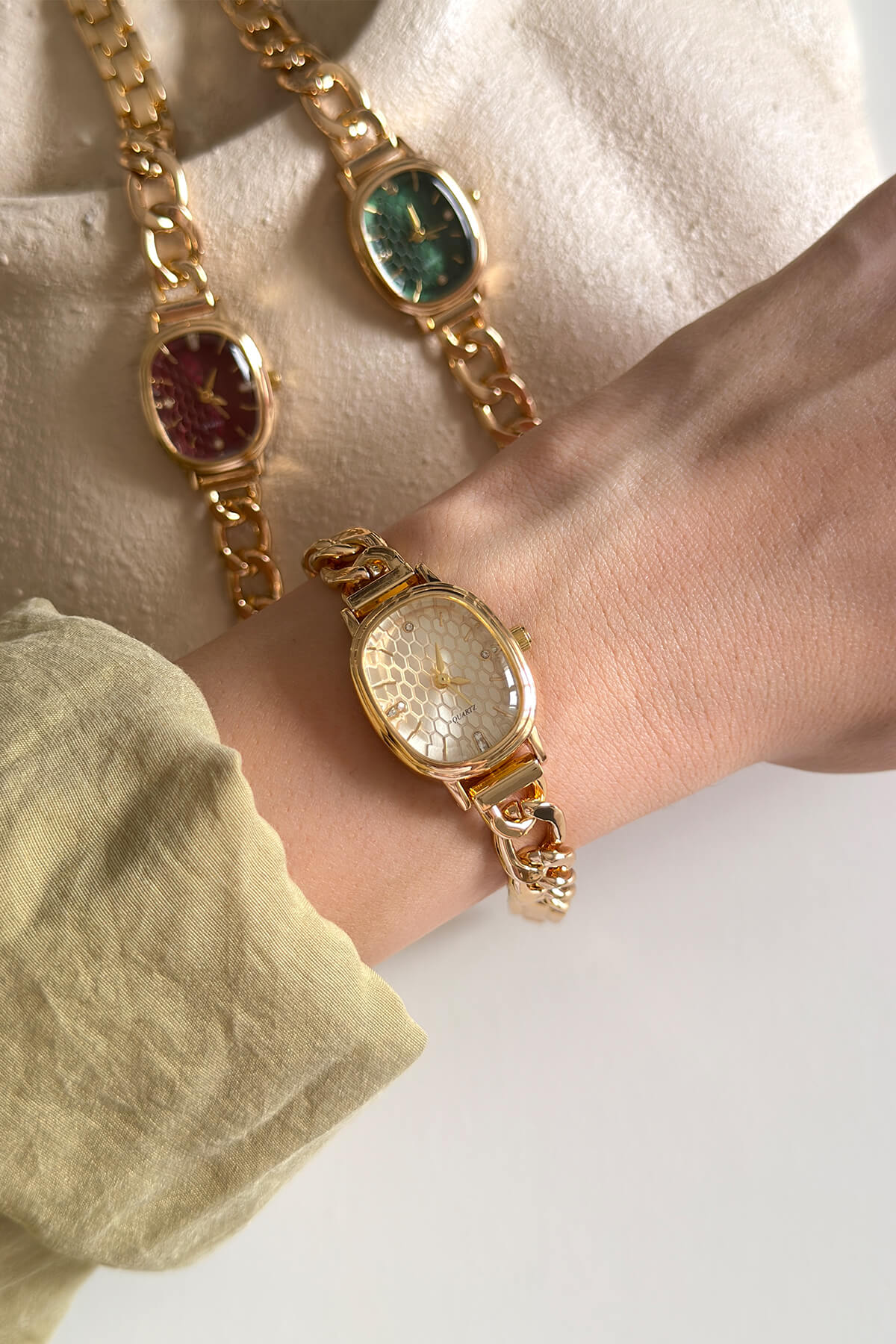 Modern tasarımı cesur detaylarla birleştirin! Bu model, ikonik gurmet zincir formundaki kordonuyla bileğinizde zengin ve dolgun bir görünüm yaratıyor. Oval kasa yapısı, kordonun sert hatlarını yumuşatırken; simli ve dokulu kadran seçenekleri saate derinlik katıyor. Hem günlük jean kombinlerine hem de şık gece elbiselerine eşlik edecek kadar çok yönlü bir parça.