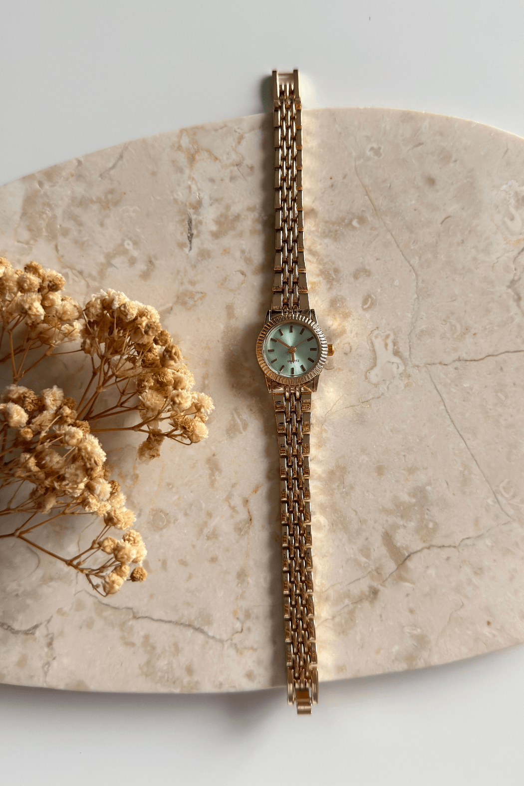 Kate, ferahlatıcı su yeşili (mint) kadranıyla klasik gold saate modern ve enerjik bir yorum getiriyor. Pastel tonların huzur veren etkisi ile altının gösterişli yapısını birleştiren bu tasarım, stilinde fark yaratmayı seven kadınlara hitap ediyor. Özellikle yaz aylarında ve açık renkli kombinlerde bileğinizde parlayacak, hem nostaljik hem de trend bir aksesuar.