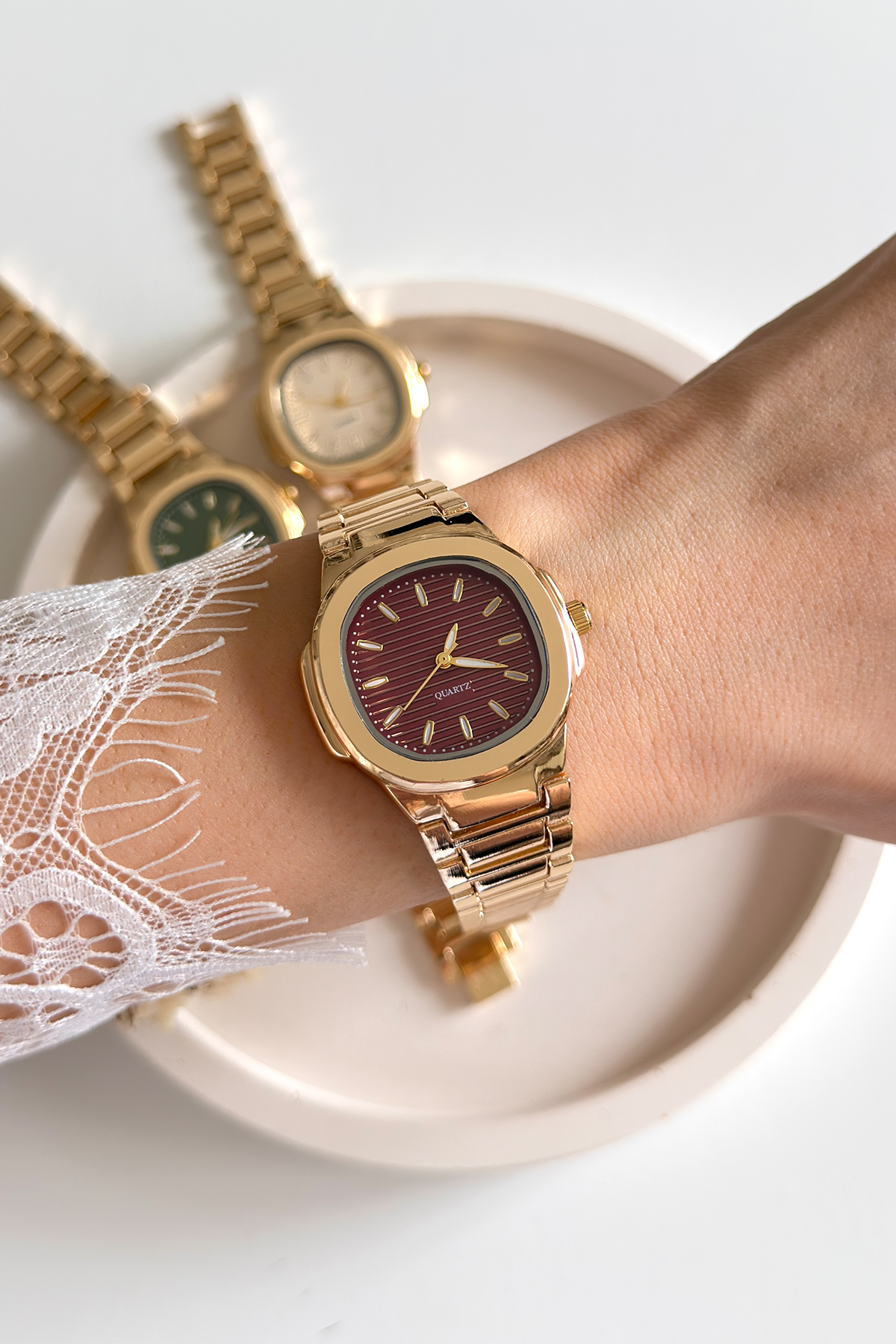 Zamanın ötesinde bir stil anlayışını bileğinize taşıyın. Nostaljik çizgilerle modernize edilen bu özel koleksiyon, rafine zevklerin en zarif temsilcisi olmaya aday. Işıltılı altın tonlarındaki çelik kordonu; derin bordo, huzurlu yeşil ve klasik krem kadran seçenekleriyle birleşerek her anınıza eşlik ediyor. Gündüz profesyonel şıklıkta, gece ise en özel davetlerde stilinizin tamamlayıcı ve imza parçası olacak.