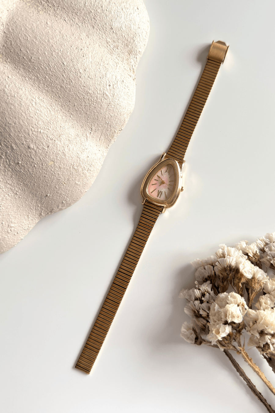 Modern geometrinin keskin hatlarını, klasik saatçiliğin zarafetiyle birleştirdik. Bu özel model, alışılmışın dışındaki üçgen kasa tasarımı ve mücevher işçiliğini anımsatan sıralı segmentli kordonuyla stilinize sofistike bir imza atıyor.