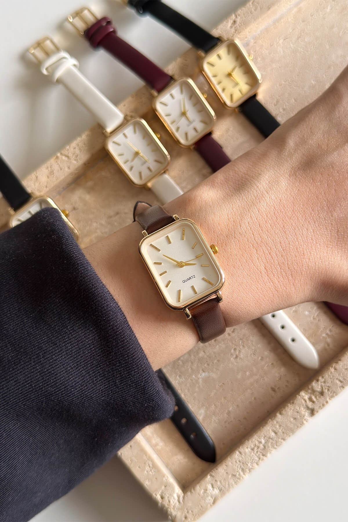 Zamansız şıklığı ve minimalizmi bir arada sunan bu vintage esintili kol saati, her tarza uyum sağlayan sade bir tasarıma sahiptir. Dikdörtgen altın rengi kasası ve yalın kadran yapısıyla hem günlük kullanımda hem de özel davetlerde bileğinizde zarif bir dokunuş oluşturur.