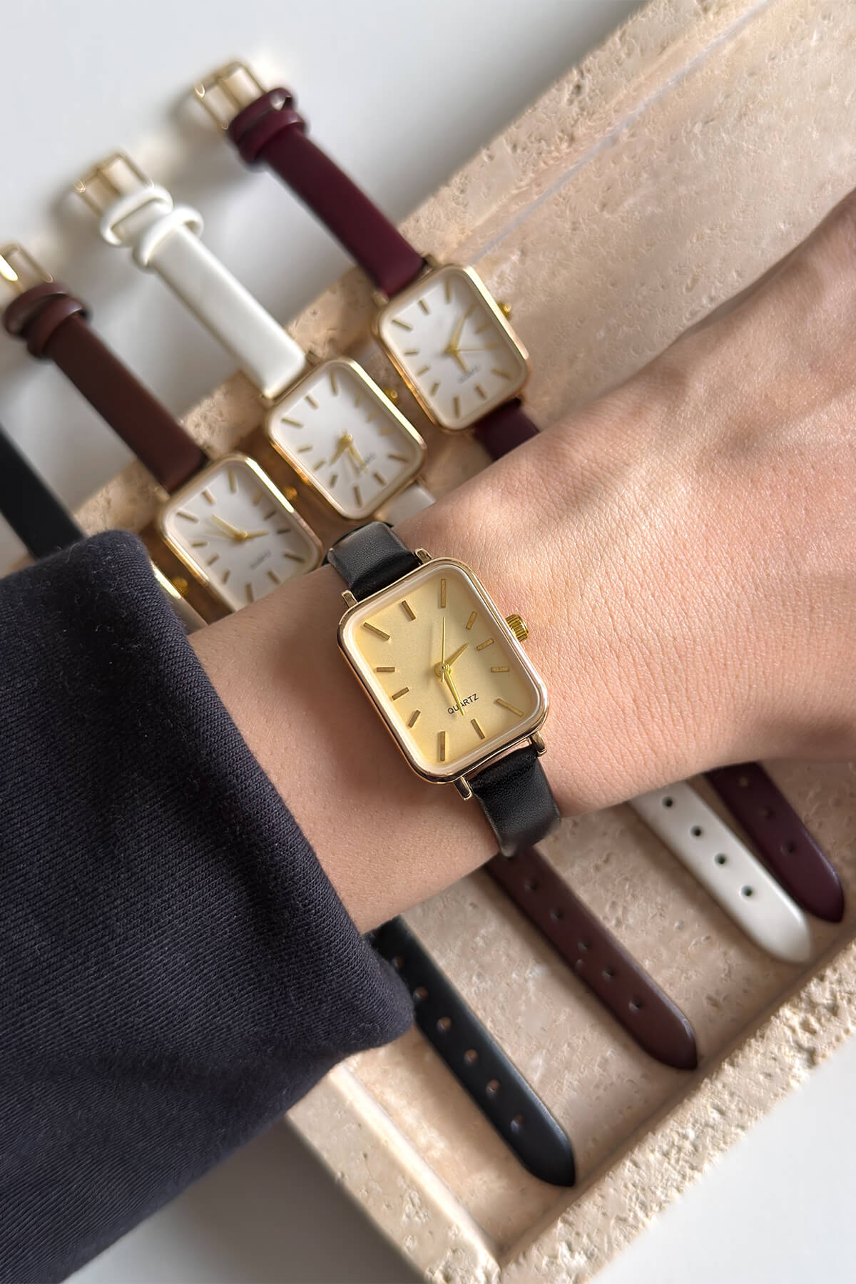 Zamansız şıklığı ve minimalizmi bir arada sunan bu vintage esintili kol saati, her tarza uyum sağlayan sade bir tasarıma sahiptir. Dikdörtgen altın rengi kasası ve yalın kadran yapısıyla hem günlük kullanımda hem de özel davetlerde bileğinizde zarif bir dokunuş oluşturur.