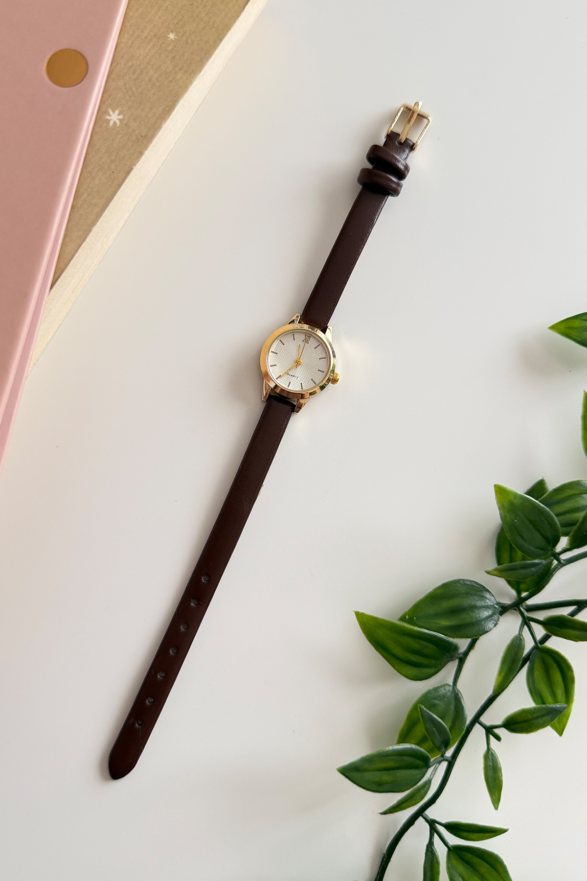 İnce deri kordonun hafifliği, altın rengi yuvarlak kasanın sadeliğiyle buluştu. Gün boyu bileğinizde yokmuş gibi hissedeceğiniz bu model, minimalist tasarımıyla hem ofis kombinlerinizin hem de günlük stilinizin vazgeçilmez bir parçası olacak. Modern kadran yapısı ve soft renk seçenekleriyle zarafeti detaylarda yaşayın.