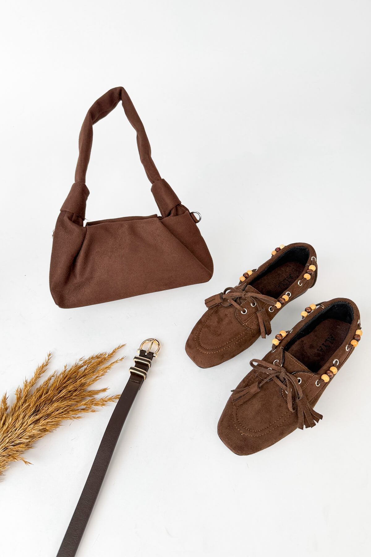 Doğal dokuların ve zarif tasarımın bir araya geldiği Lucca Serisi, stilini bütünsel bir bakış açısıyla oluşturmak isteyenler için tasarlandı. Süet dokulu, etnik boncuk ve püskül detaylarıyla zenginleştirilmiş babetler, adımlarınıza bohem bir şıklık katarken; yumuşak formlu düğüm detaylı çanta modern bir silüet çiziyor. Setin tamamlayıcı gücü olan klasik kemerle birleşen bu üçlü, kaliteli dokusu ve "tok duruşu" ile her mevsim gardırobunuzun en joker parçası olmaya aday.