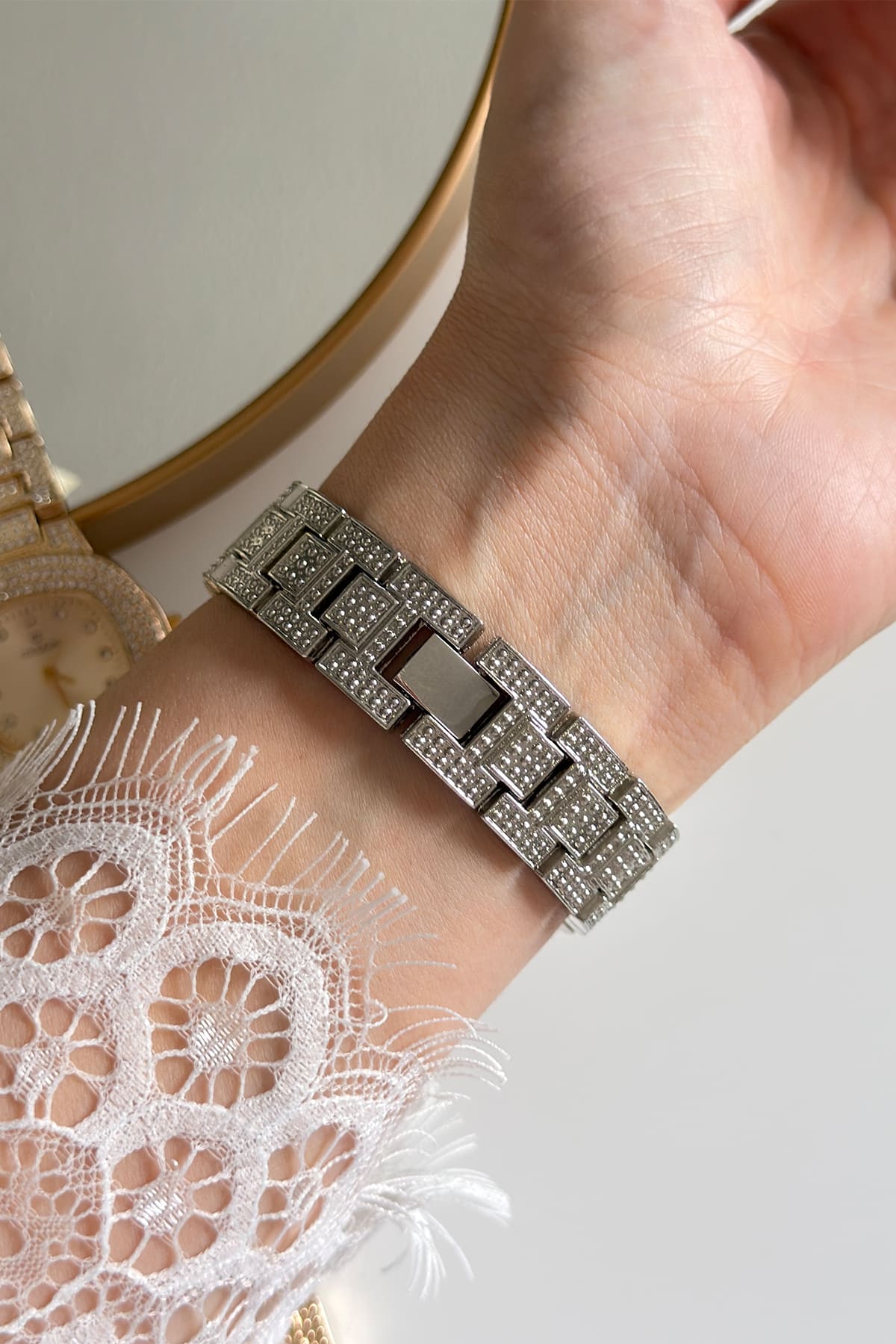 Lüksü ve zarafeti tek bir karede buluşturan bu model, her saniyeyi bir kutlamaya dönüştürmek isteyen kadınlar için tasarlandı. Kordonundan kasasına kadar her noktası yüksek kaliteli kristal taşlarla işlenmiş olan bu saat, hem bir zaman ölçer hem de göz alıcı bir mücevher niteliğindedir.