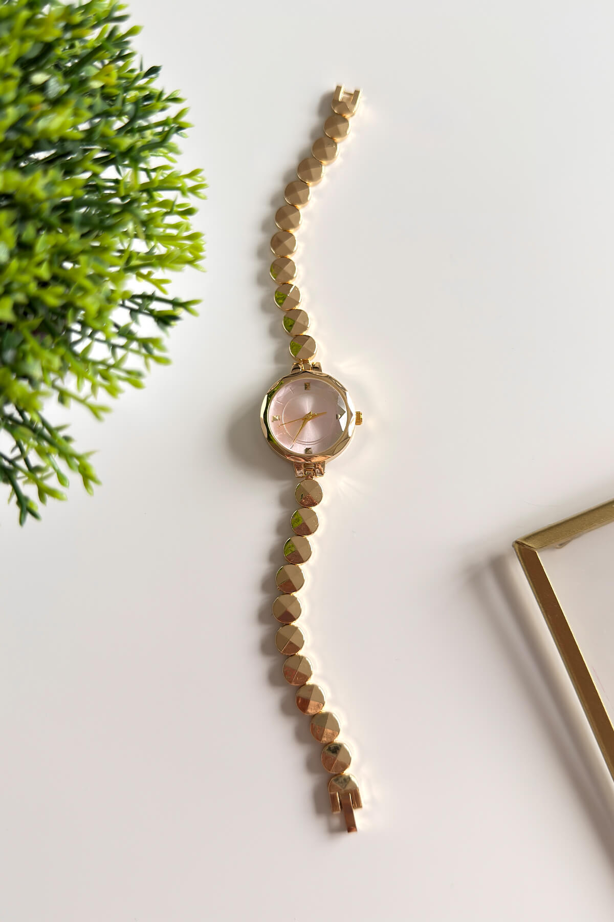 Zamanı bir mücevher zarafetiyle bileğinizde taşıyın. Klasik yuvarlak kasa tasarımını, ışığı her açıdan yakalayan fasetli cam detaylarıyla birleştiren bu seri, sofistike bir şıklık arayanlar için tasarlandı. Özel tasarım dairesel baklalardan oluşan kordon yapısı, saate hem modern bir hava katıyor hem de bileği nazikçe sararak konforlu bir kullanım sunuyor.