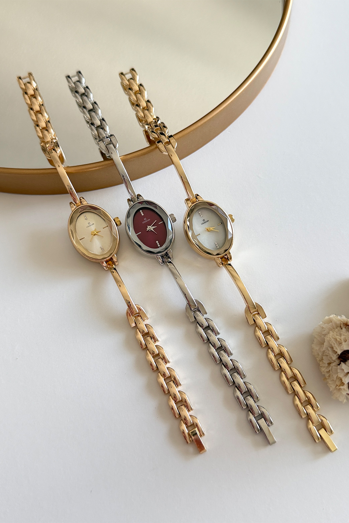 Cesur ve sofistike bir tarz arayan kadınlar için tasarlandı. İnce hatlı oval kasası ve zarif taşlı indeksleri, metal kordonun ışıltısıyla birleşerek bileğinizde kusursuz bir uyum yakalıyor. Hem profesyonel ofis kombinlerinize hem de şık akşam yemeklerinize uyum sağlayan bu model, premium hissi ve dayanıklı kaplamasıyla koleksiyonunuzun en değerli parçalarından biri olacak.
