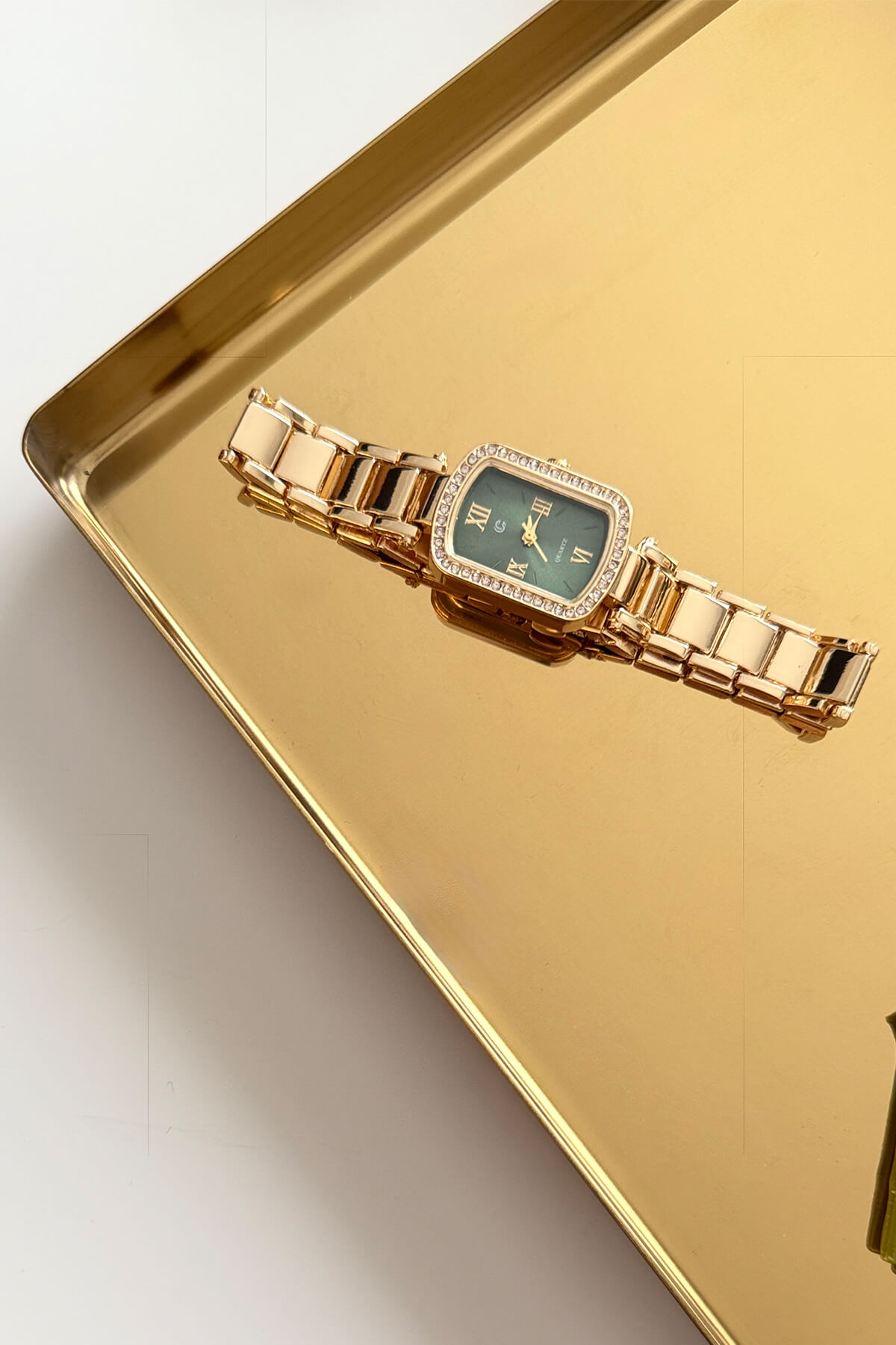 Göz alıcı taş işlemeleriyle çerçevelenen dikdörtgen kasa, güçlü metal kordon yapısıyla buluşuyor. Klasik Roma rakamlı kadranı ve zengin renk seçenekleriyle bu model, bir saatten çok bileğinizde parlayan lüks bir mücevher. Sofistike tasarımı ve zamansız estetiğiyle, en özel anlarınızda stilinizin imza parçası olacak.