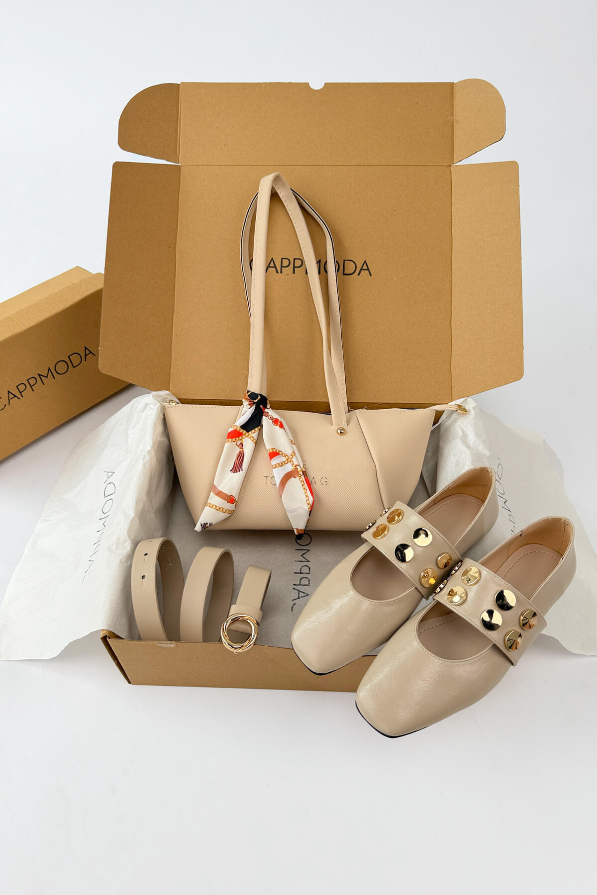 Modanın kalbinden ilham alan Milano Serisi, sofistike detayları ve kusursuz deri işçiliğini bir araya getiriyor. Birinci kalite suni deri kullanılarak üretilen babetler, yumuşacık dokusuyla ayağınızı nazikçe sararak eşsiz bir konfor sunarken; üzerindeki dairesel trok aksesuarları tasarıma modern ve iddialı bir dokunuş katıyor. Setin zarafetini tamamlayan fular detaylı omuz çantası ve şık deri kemer, "tok duruşu" ile her kombinle mükemmel bir uyum yakalıyor. Hem ofis şıklığında hem de özel davetlerde stilinizle fark yaratmanız için tasarlanan bu üçlü set, konforu lüksle buluşturuyor.