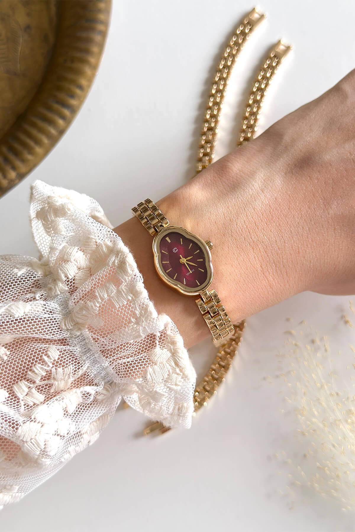 Cappmoda Neria Bordo Kadran Metal Gold Kordon Kadın Kol Saati
