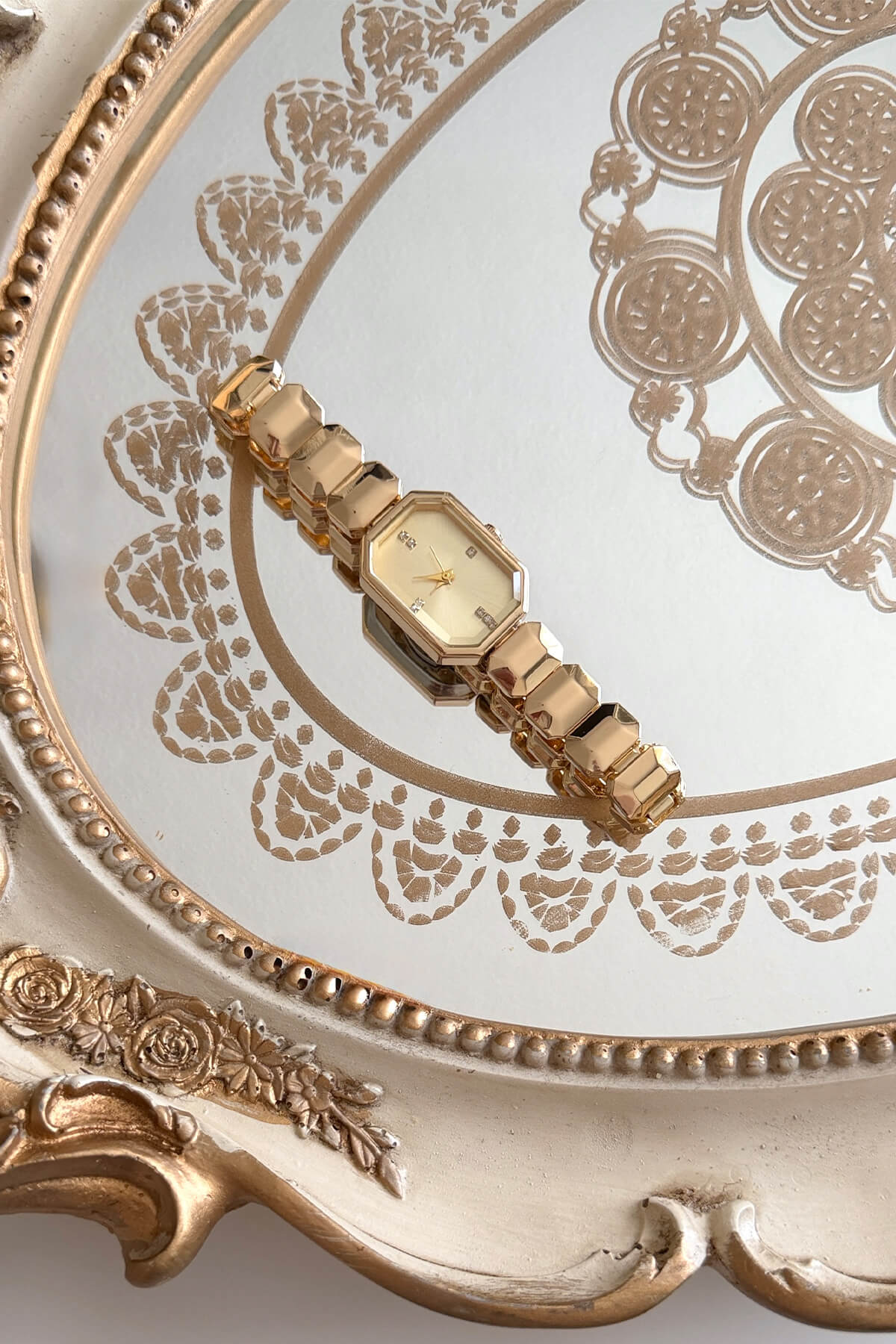 Klasik saat formlarını unutun! Dikdörtgen kasanın modern duruşu, kadranındaki taşların ışıltısıyla buluştu. Bu saat sadece zamanı değil, sizin ışıltınızı da yansıtacak. Bileğinizde bir bileklik zarafetiyle taşıyacağınız bu "it-piece" ile tanışın.