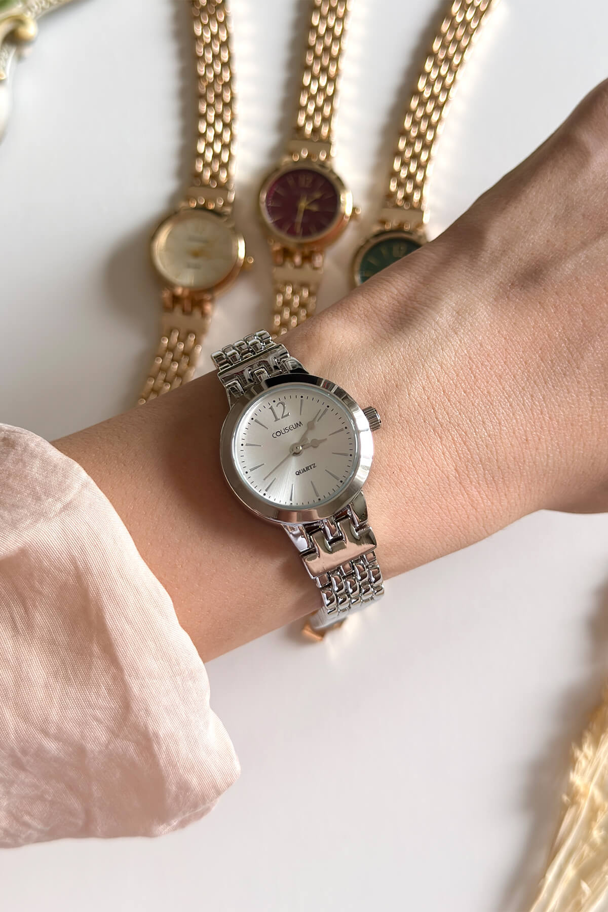 Zengin renk seçenekleri ve özel dokulu kordonuyla şıklığı yeniden tanımlayın! Bu koleksiyon, hasır örgüyü andıran pirinç kordon yapısıyla bilekte yumuşak ve konforlu bir his bırakırken, görsel olarak dolu dolu bir görünüm sunuyor. Zümrüt yeşili, mürdüm, klasik gümüş ve şampanya tonlarındaki kadranlar, her zevke hitap eden bir seçki oluşturuyor.