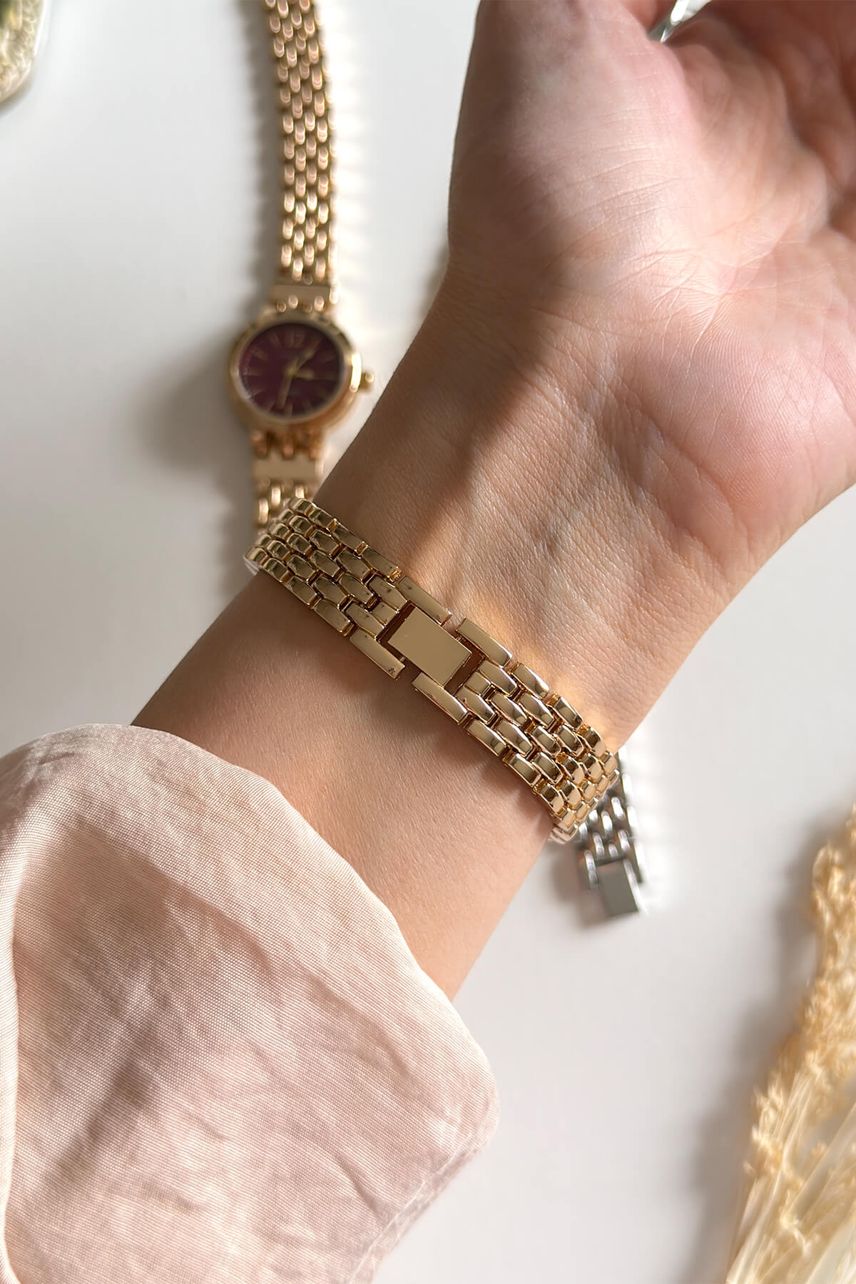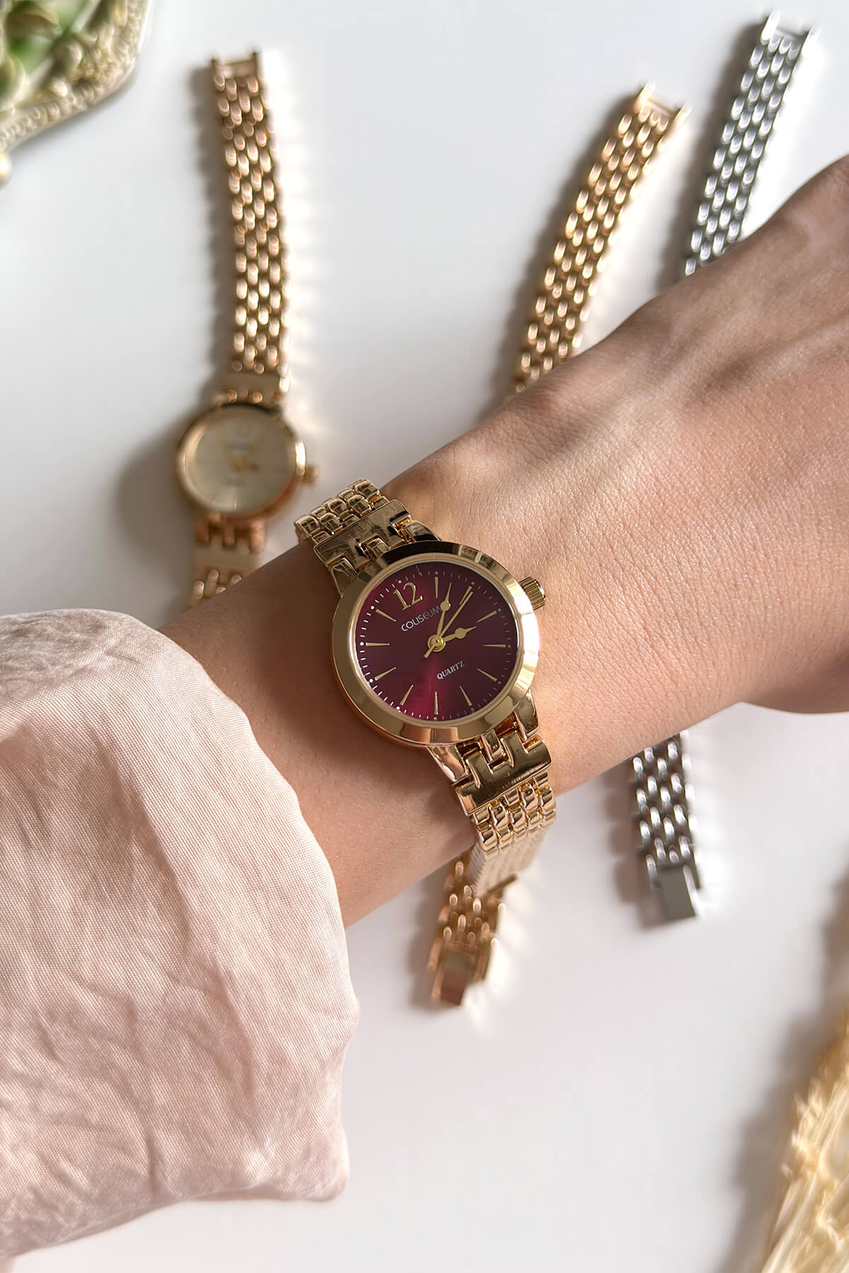 Cappmoda Nua Bordo Kadran Gold Çelik Kordon Kadın Kol Saati