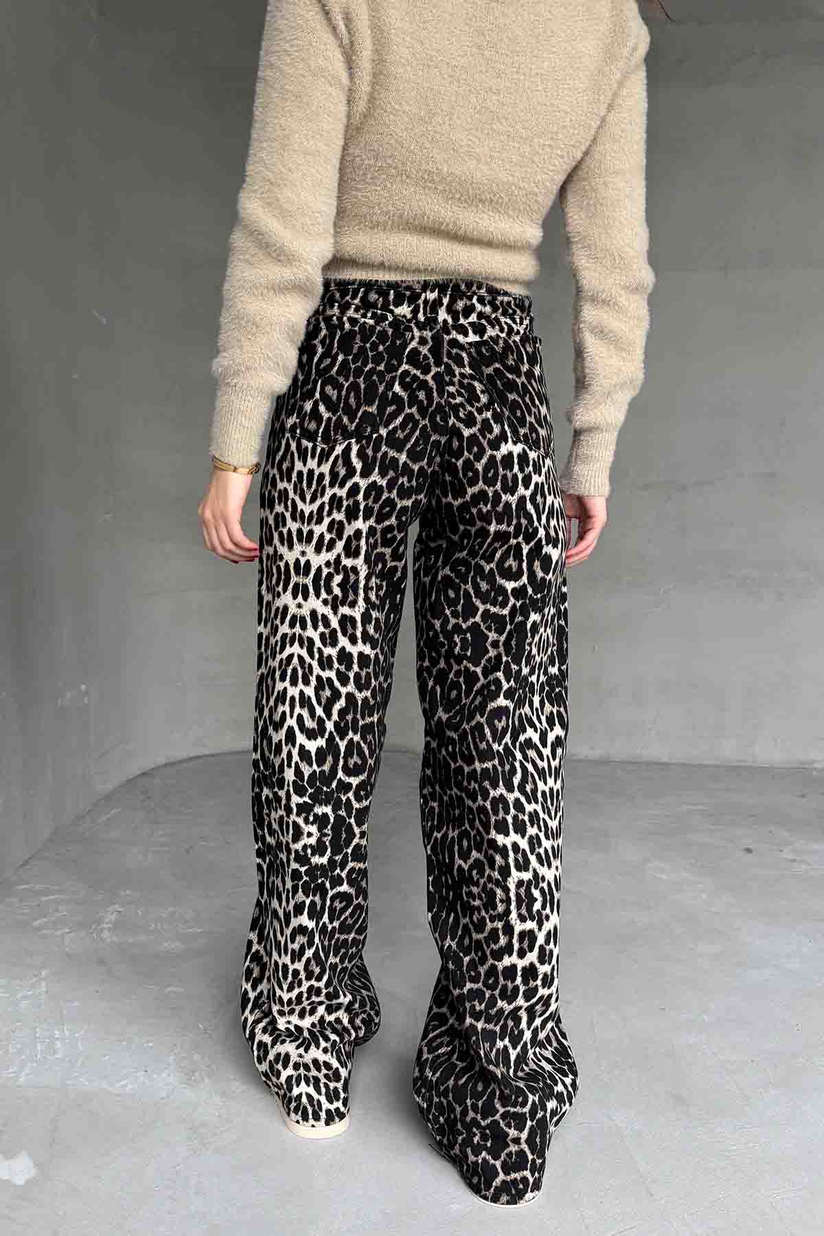 PNT-07402 Leopar Desenli Kot Kumaş Yüksek Bel Palazzo Pantolon - 1PNT-07402 Leopar Desenli Kot Kumaş Yüksek Bel Palazzo Pantolon - 2PNT-07402 Leopar Desenli Kot Kumaş Yüksek Bel Palazzo Pantolon - 3