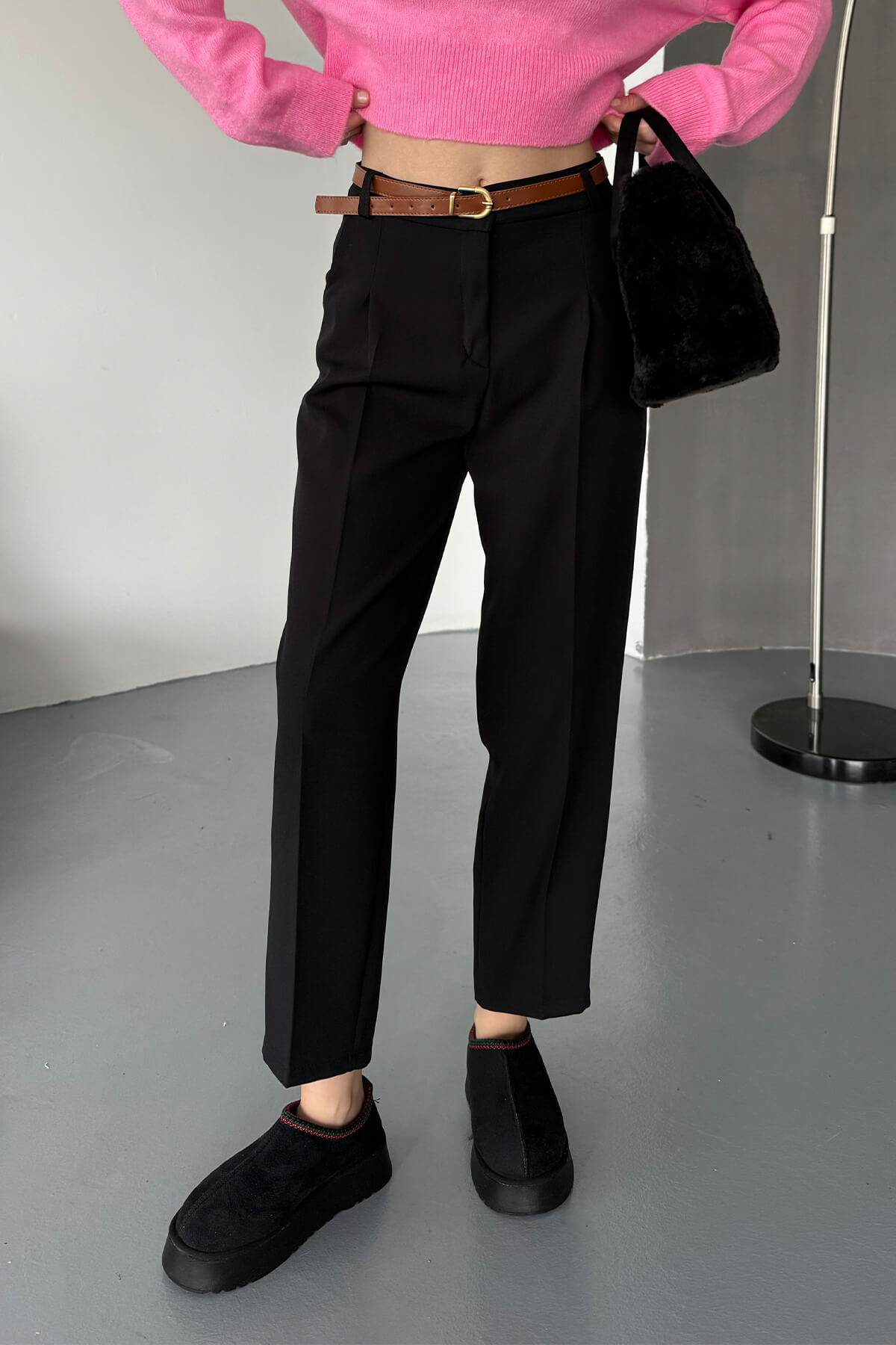 PNT-07404 Siyah Kemerli Havuç Model Atlas Kumaş Pantolon