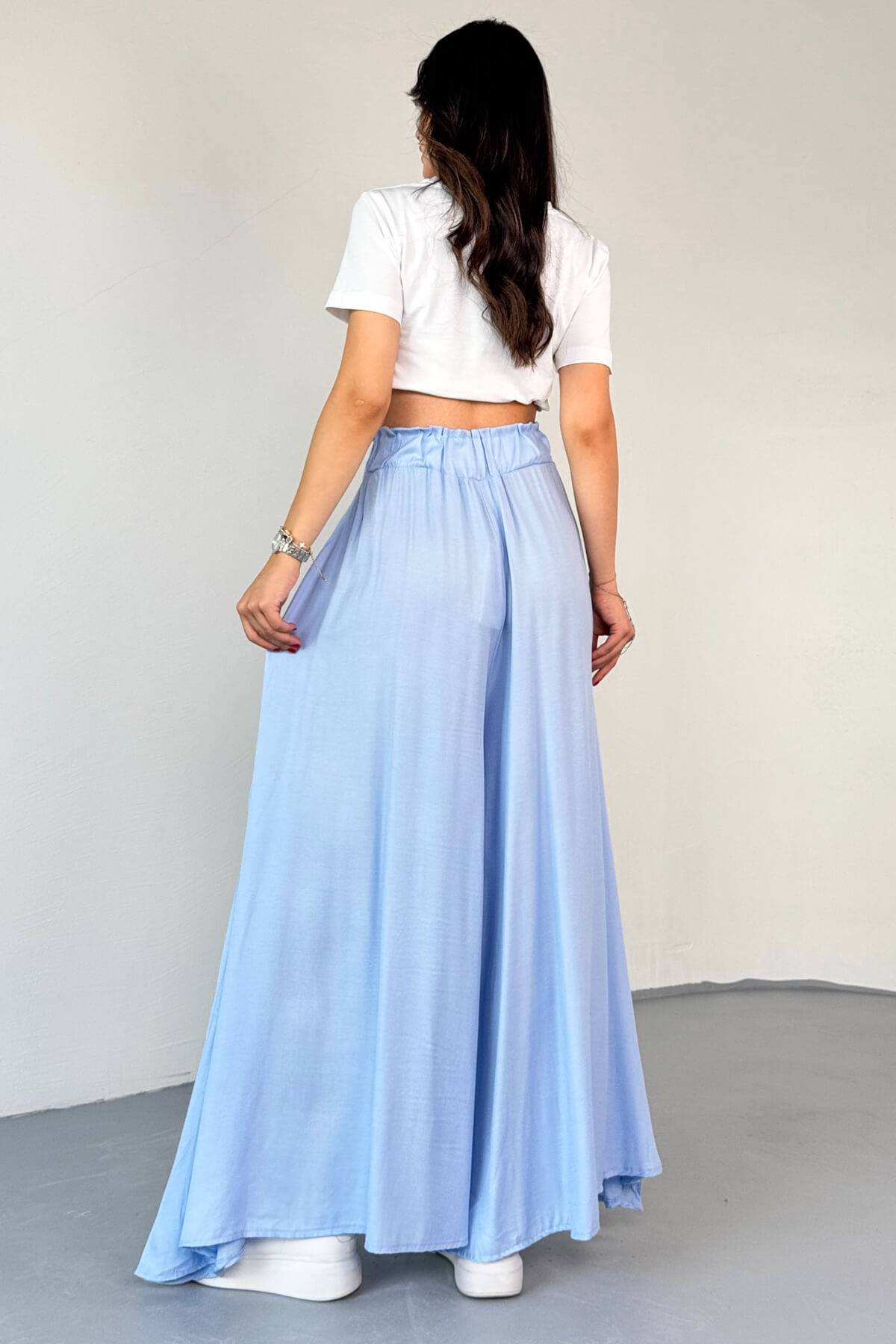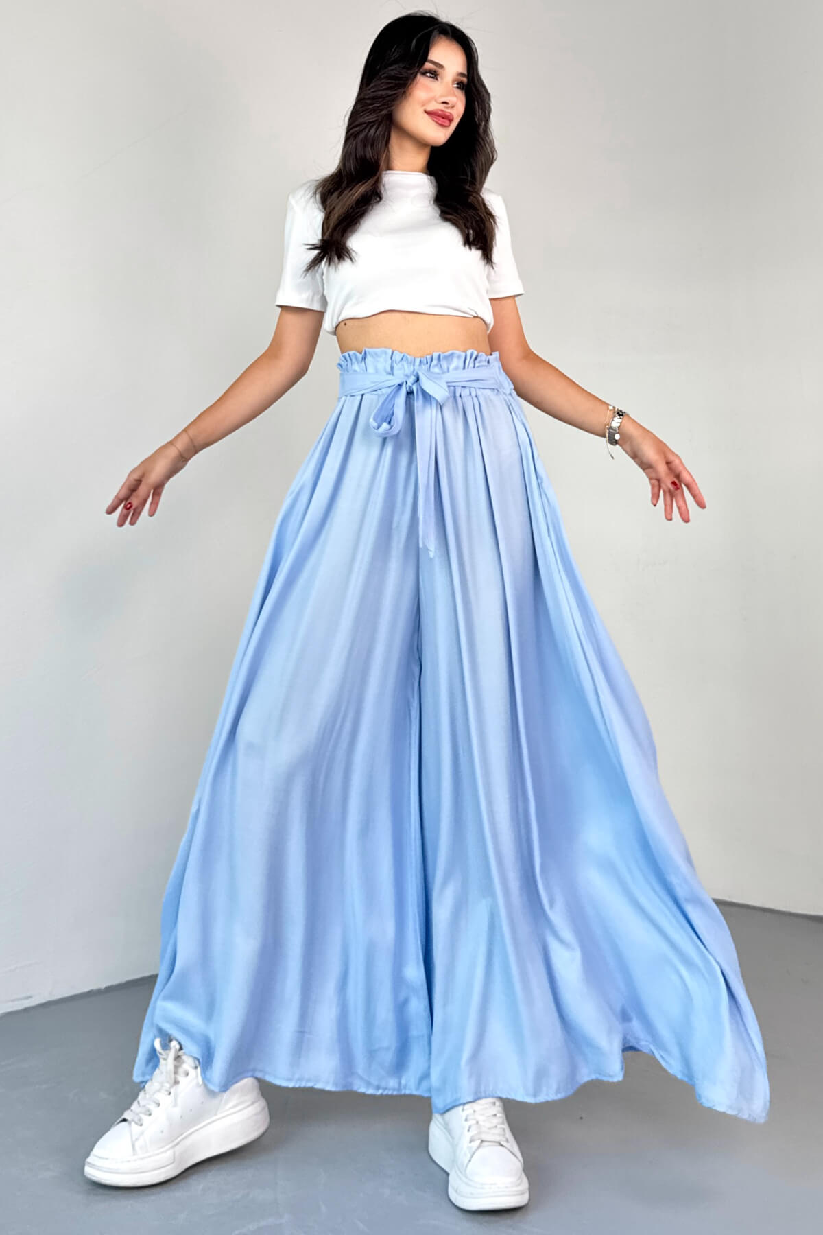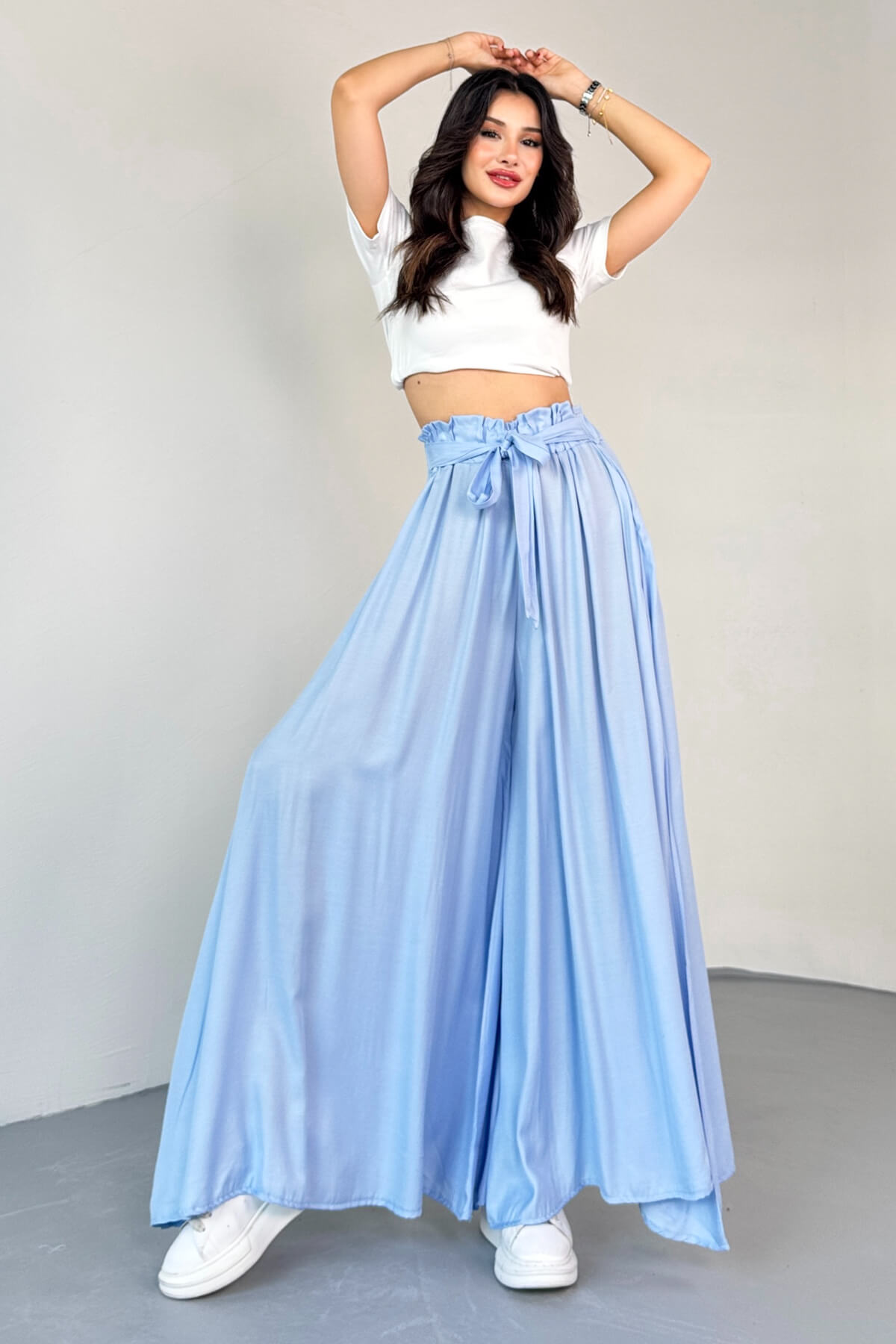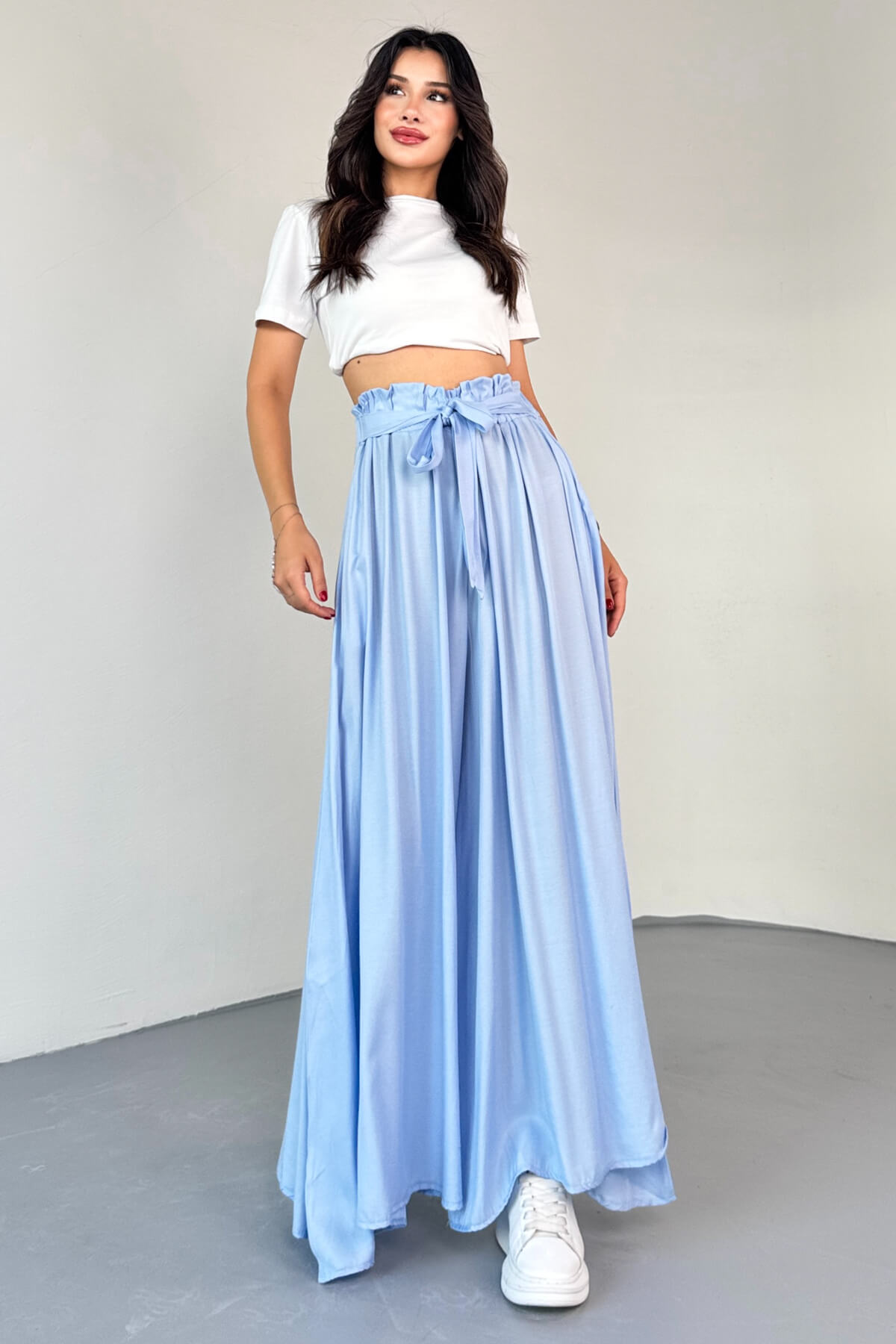 PNT-07410 Bebe Mavi Dokuma Kuşaklı Şalvar Etek Pantolon